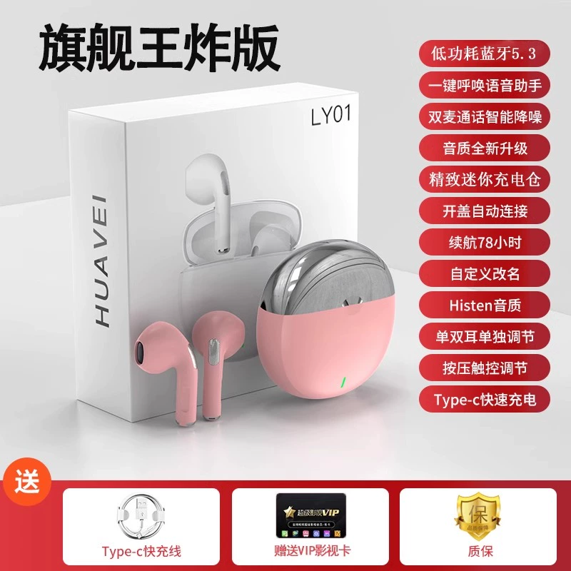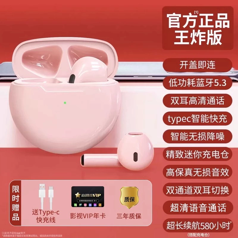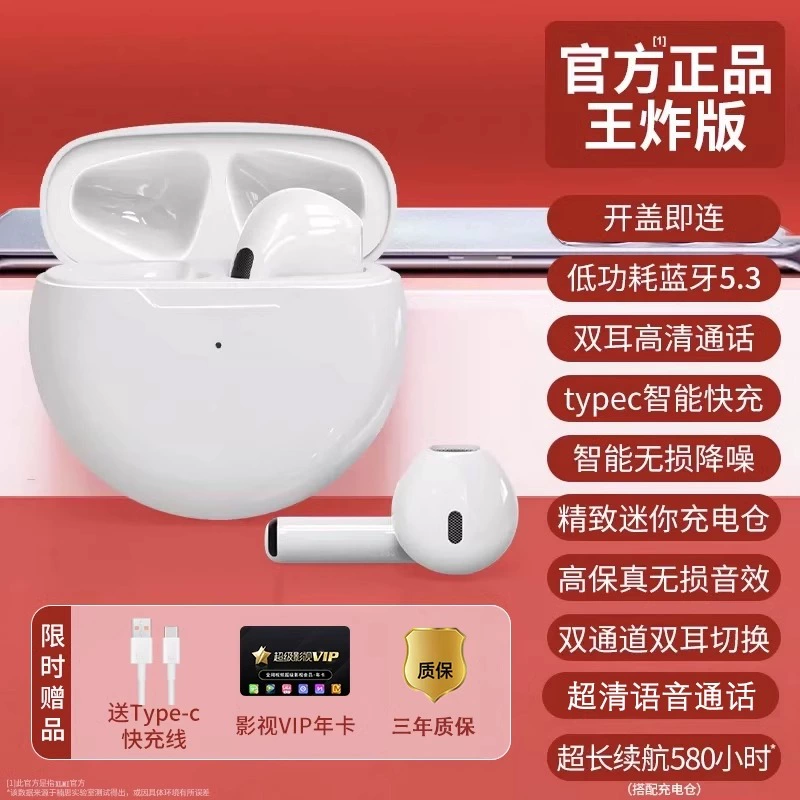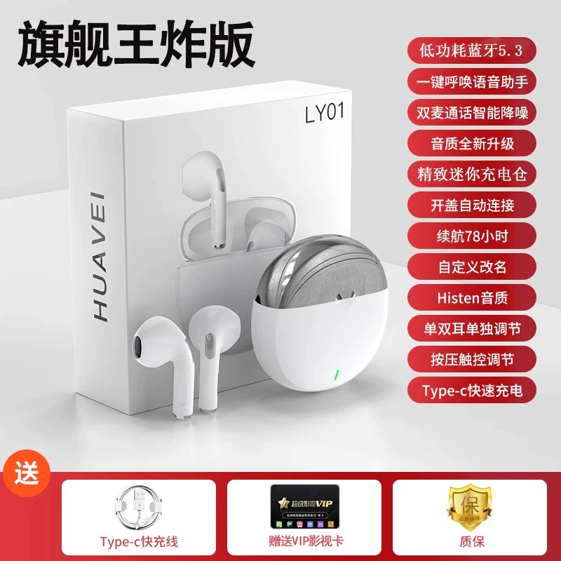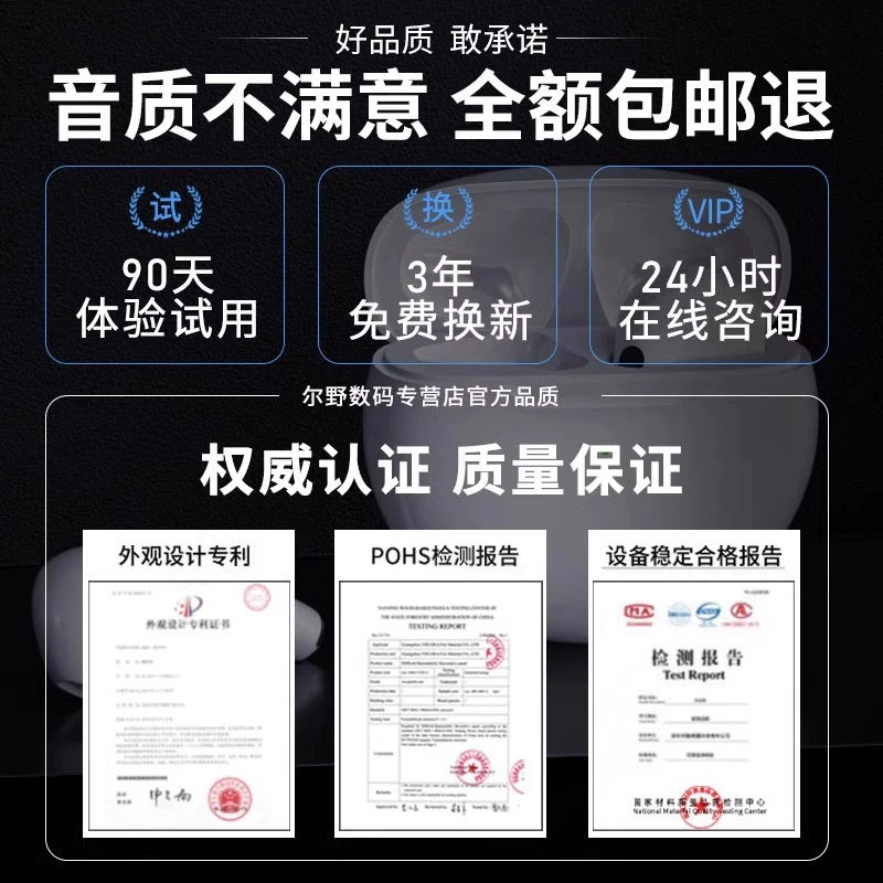 2024 New True Wireless Semi-In-Ear Bluetooth Headset Official Authentic Men's and Women's Sports Noise Reduction Extra Long Battery Life