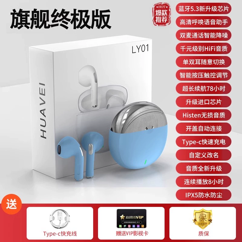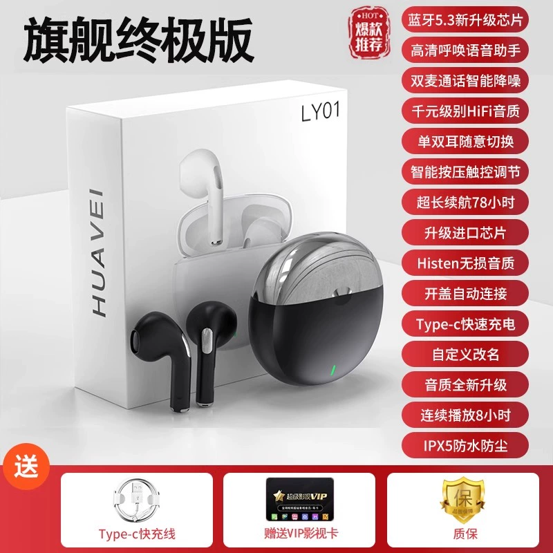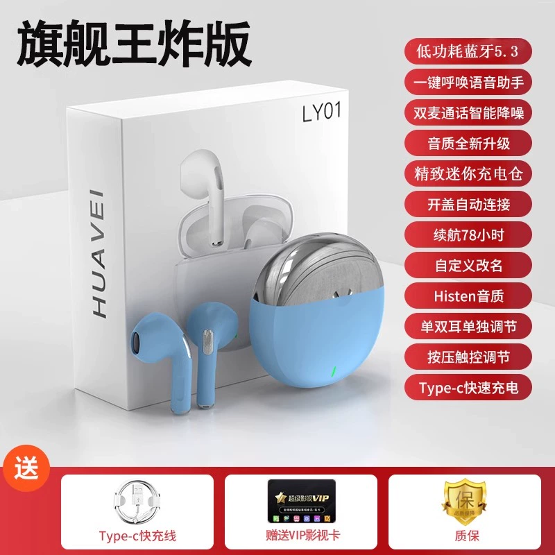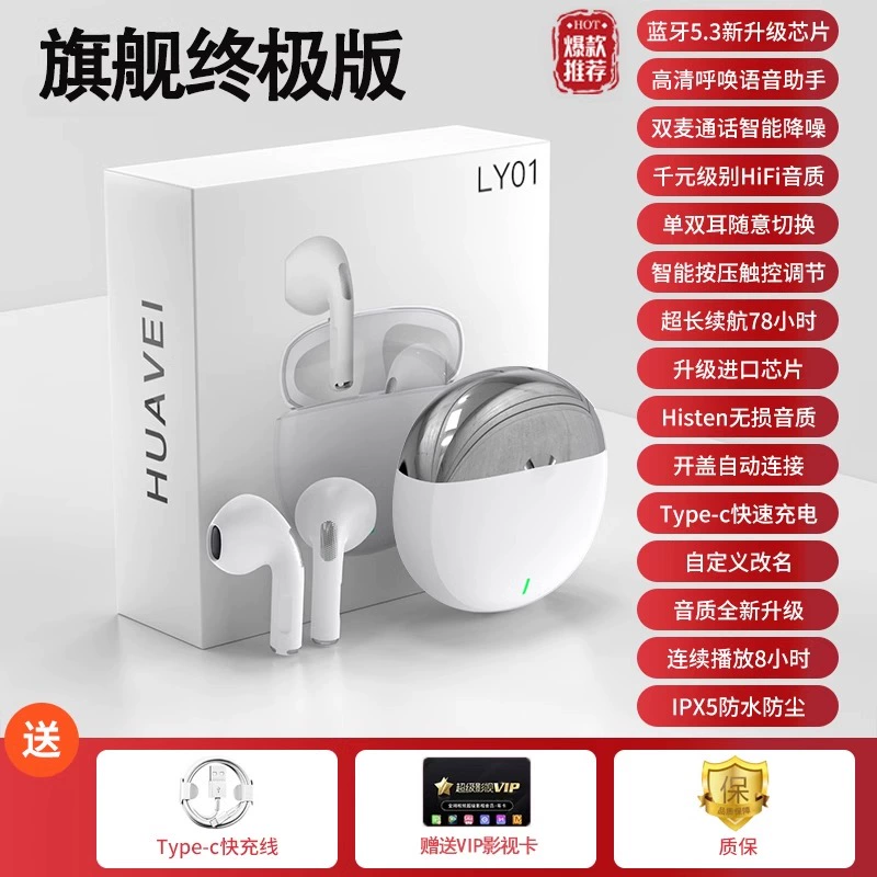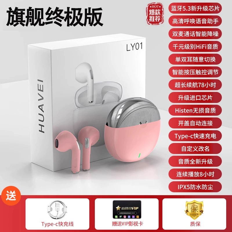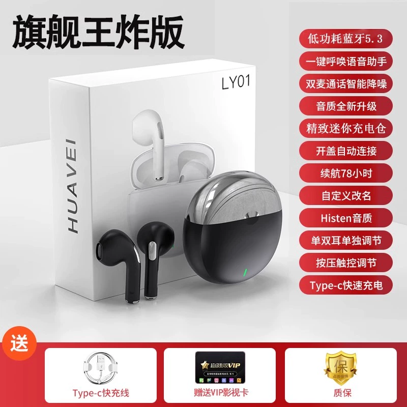 2024 New True Wireless Semi-In-Ear Bluetooth Headset Official Authentic Men's and Women's Sports Noise Reduction Extra Long Battery Life
