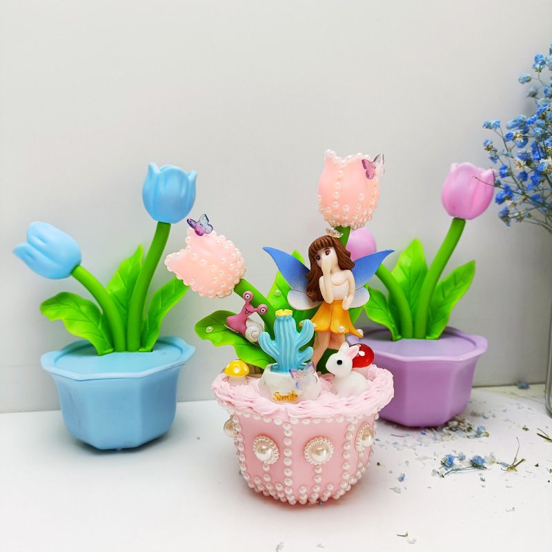 2024 New tulip flower table lamp children's handmade DIY luminous toy bedroom bedside atmosphere night light