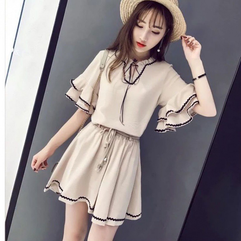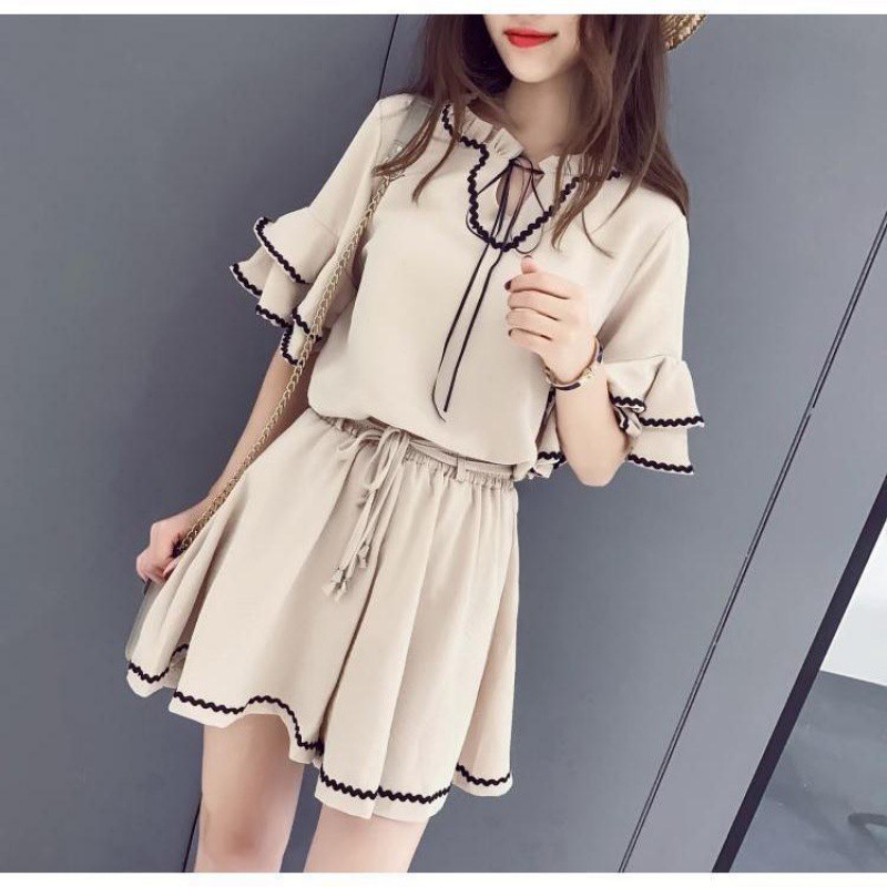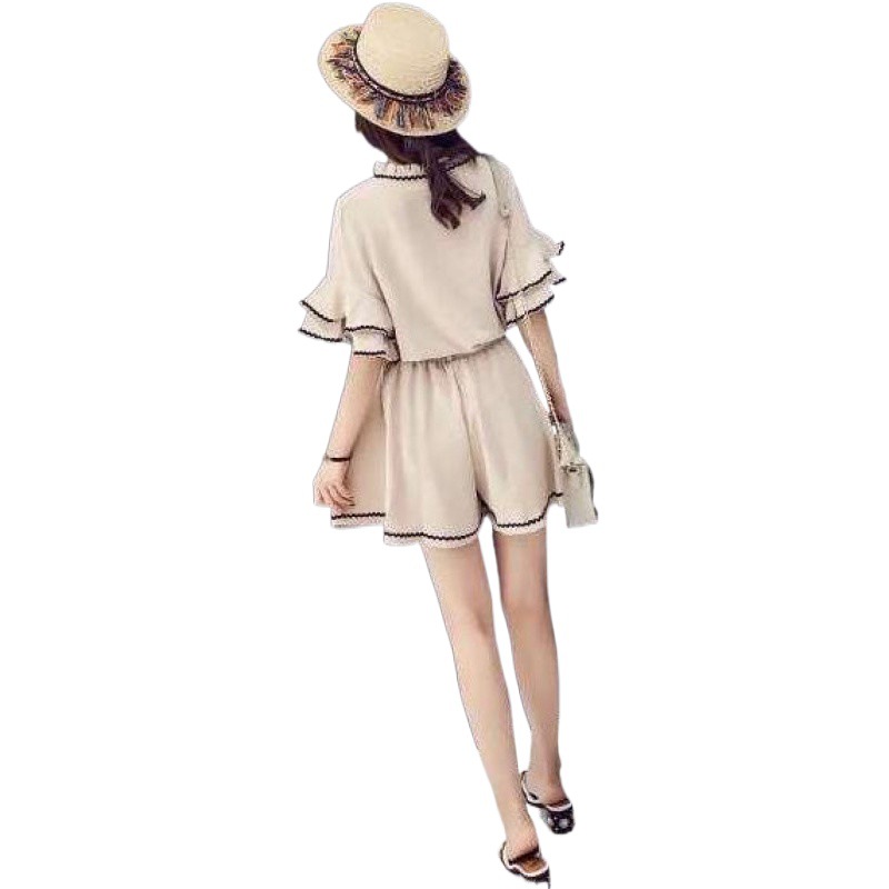 | nameOriginal | 2024 New Two-piece Korean Style Lotus-leaf Sleeve Sweet Fresh Loose Style Loose Top Women's Wide-leg Shorts suit Summer |