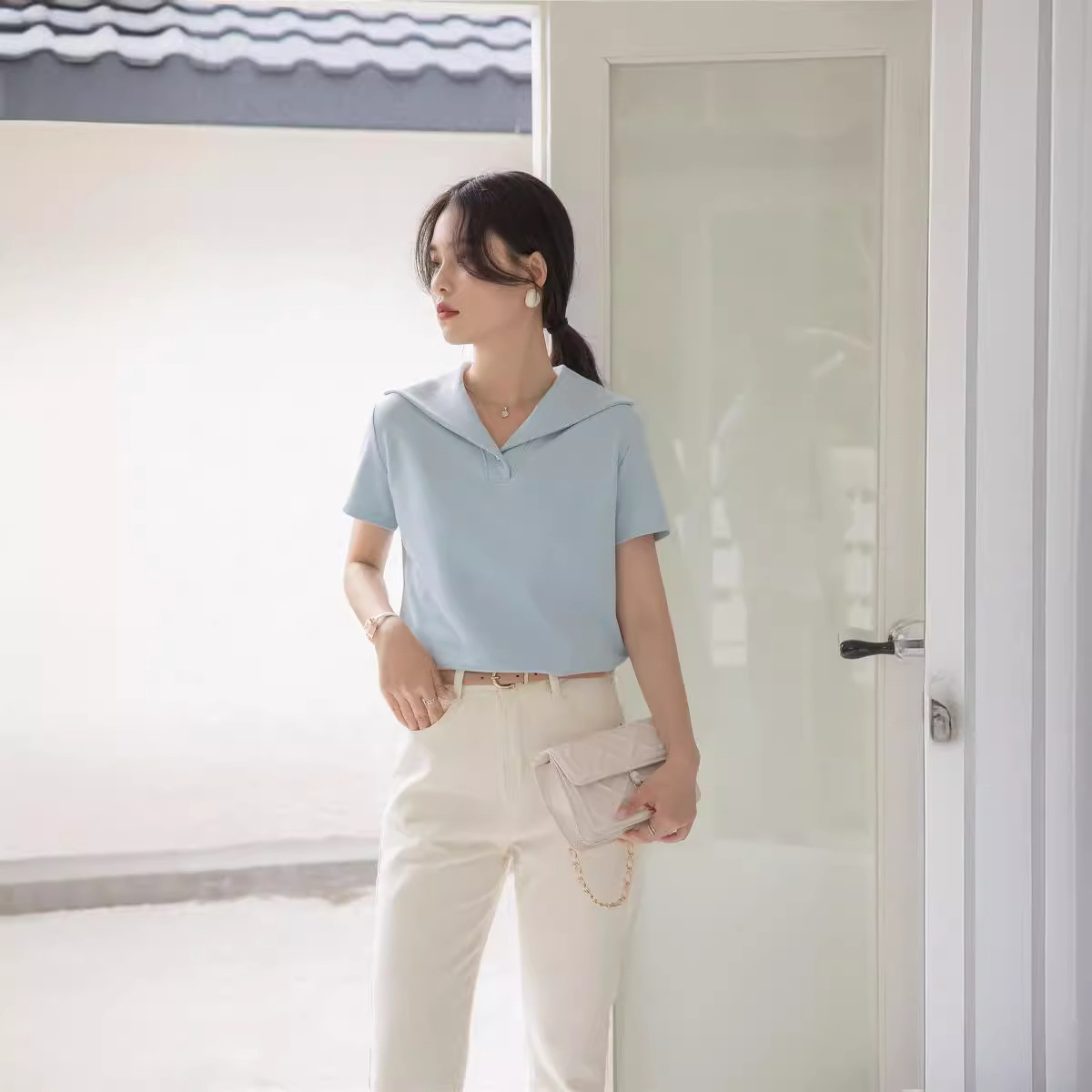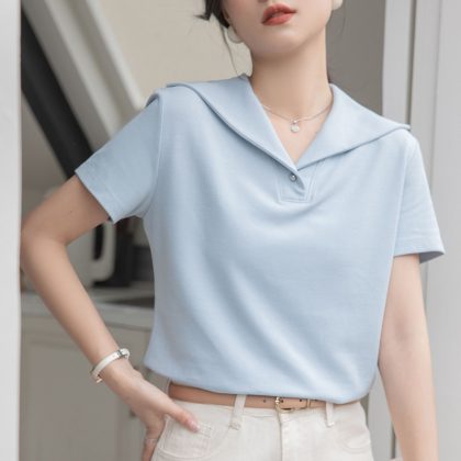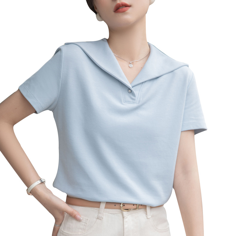 | nameOriginal | 2024 New Vintage Three-dimensional Navy Collar Short-sleeved T-shirt Women's Summer Fashion Commuting Simple Chic V-neck Top |
