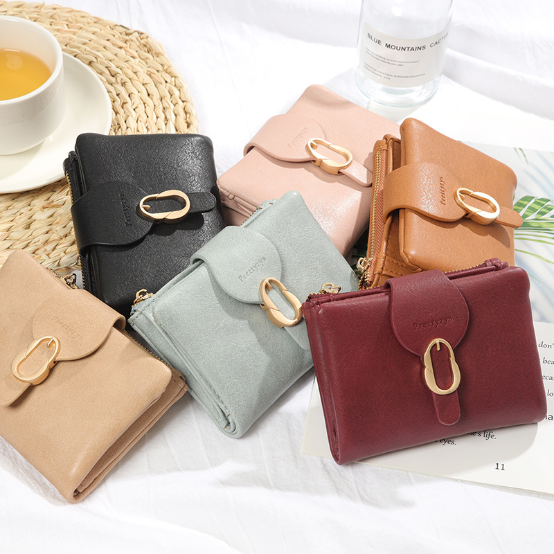 | nameOriginal | 2024 New wallet women's Korean-style PU buckle simple niche folding zipper women's wallet multi-card coin wallet |