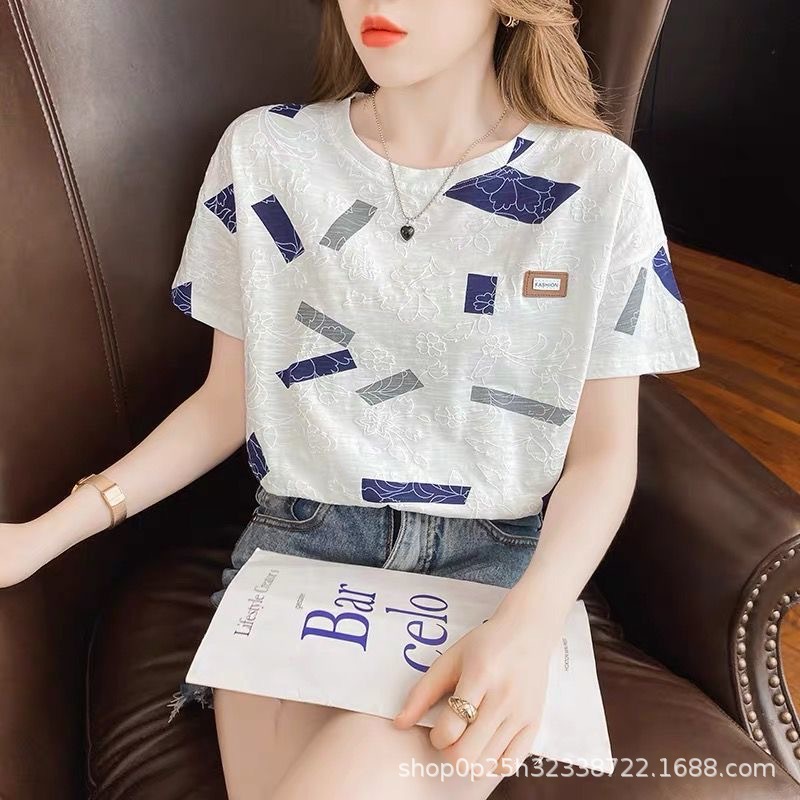 2024 New White T-Shirt Women's Short Sleeve Round Neck Loose T-Shirt Base Shirt All-match Top Instagram Trend