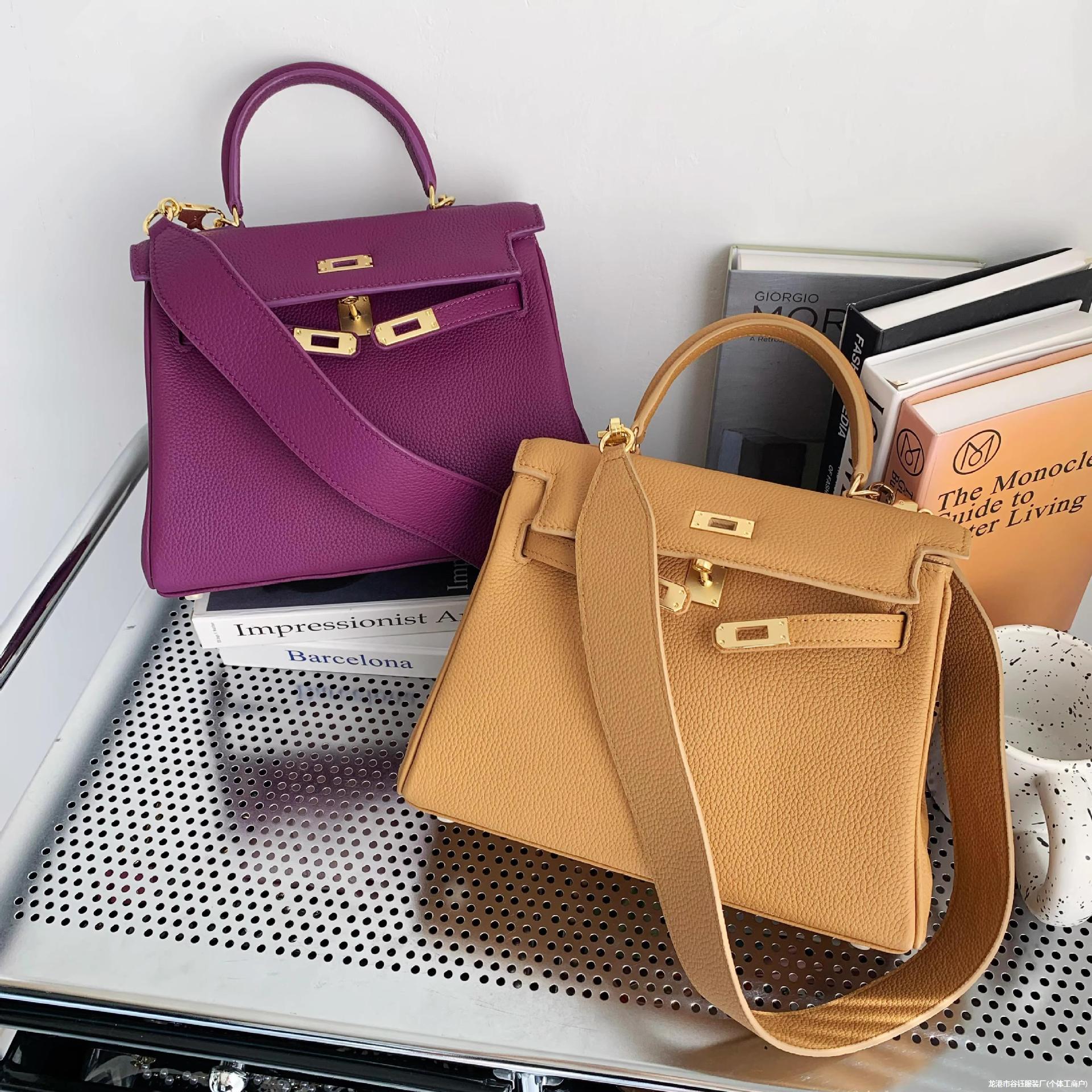 | nameOriginal | 2024 New Wide Shoulder Strap Silver Buckle Kelly Bag Togo Leather Large Capacity Portable Shoulder Crossbody Bag |