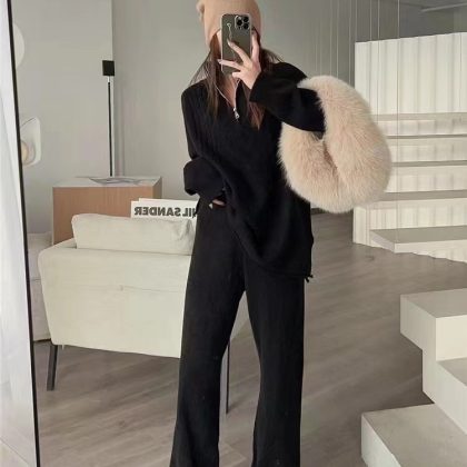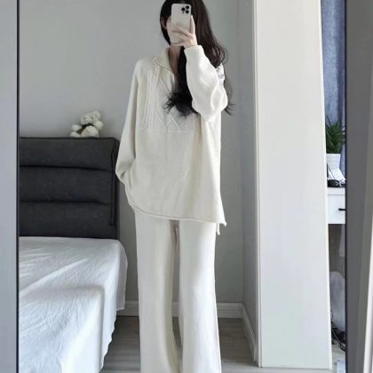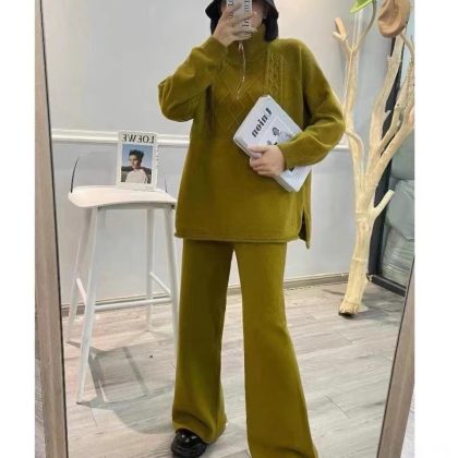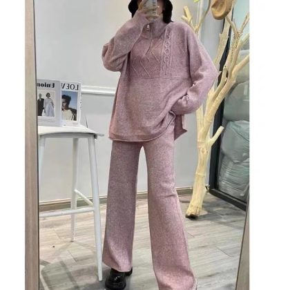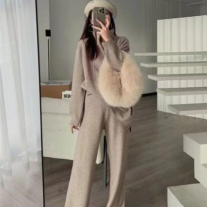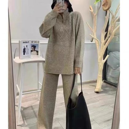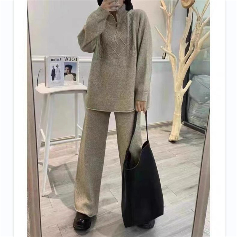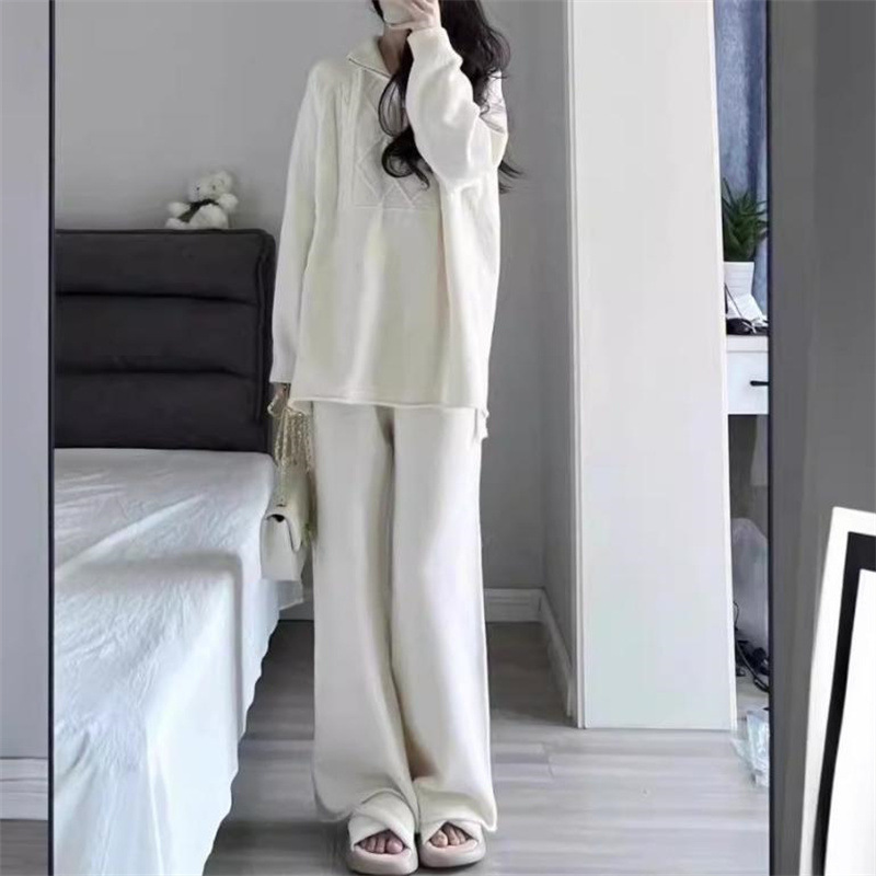 | nameOriginal | 2024 New Winter Casual Korean-style Salt Age-reducing Cyber-famous Hong Kong-style Knitted Sweater Wide-leg Pants Two-piece Suit for Women |