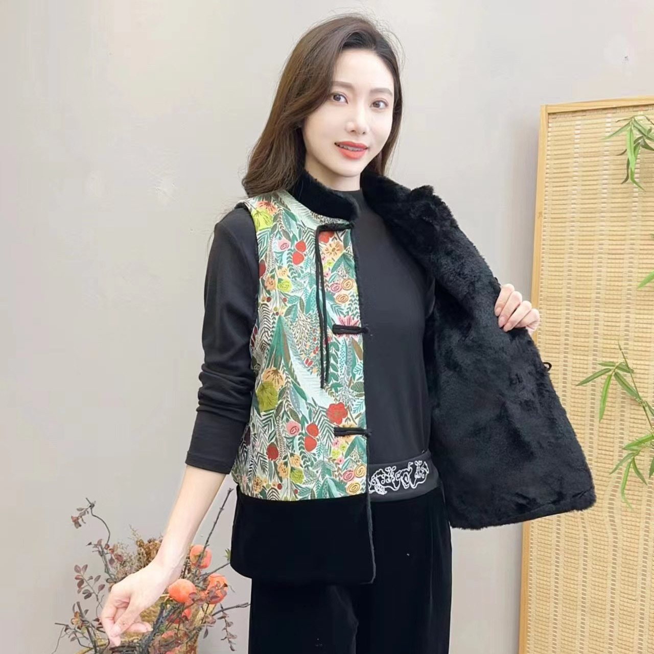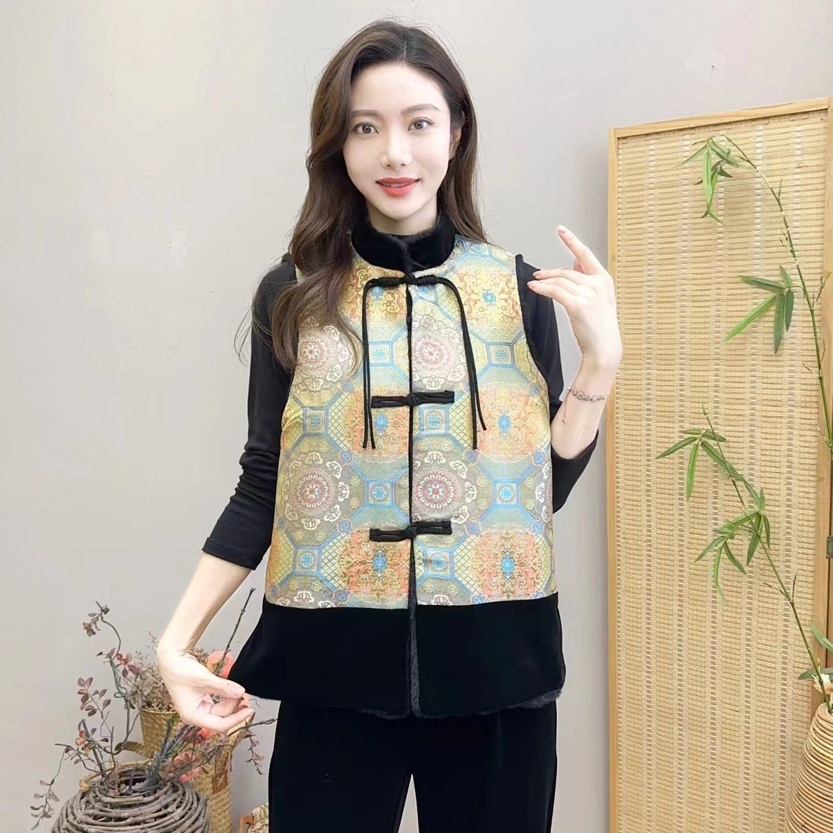 | nameOriginal | 2024 new women's new Chinese style jacquard vest fashionable retro buckle versatile thick warm vest |