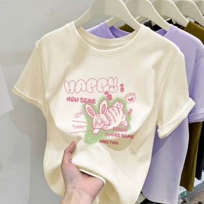 2024 new women’s slim large size ins short-sleeved T-shirt