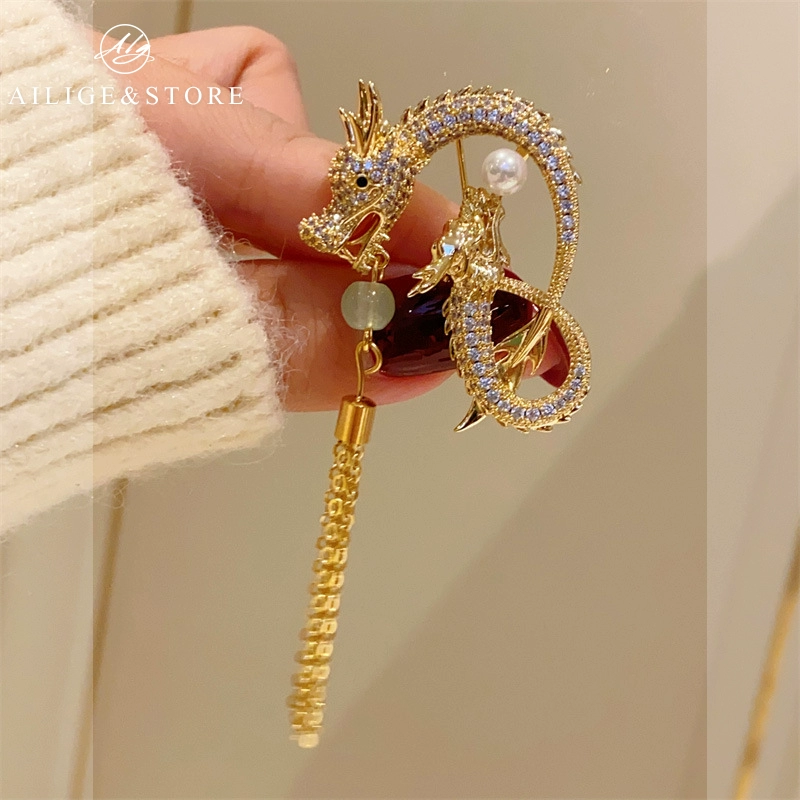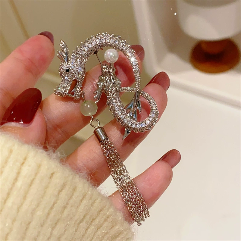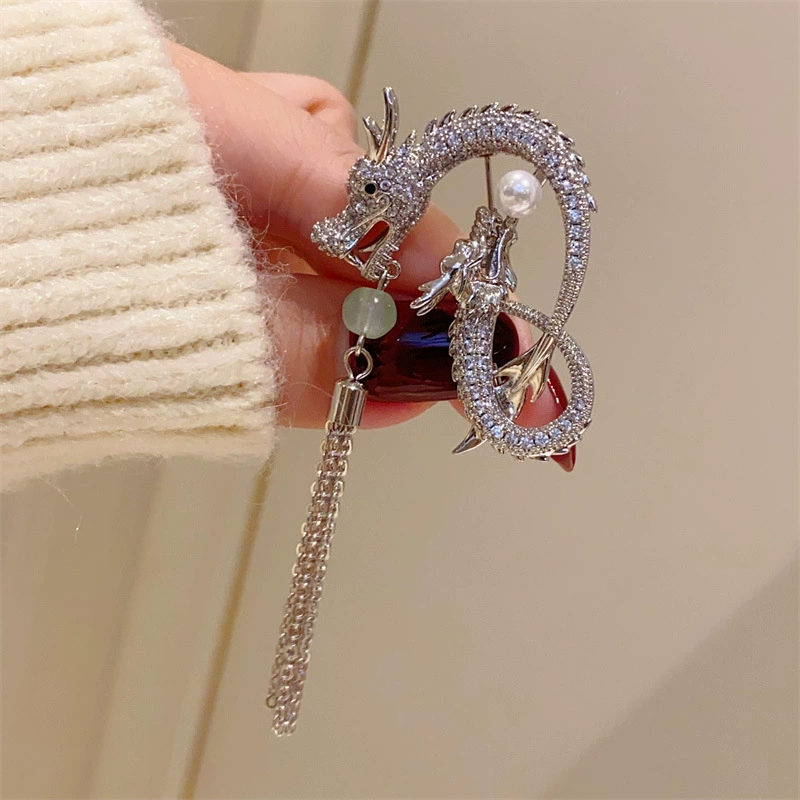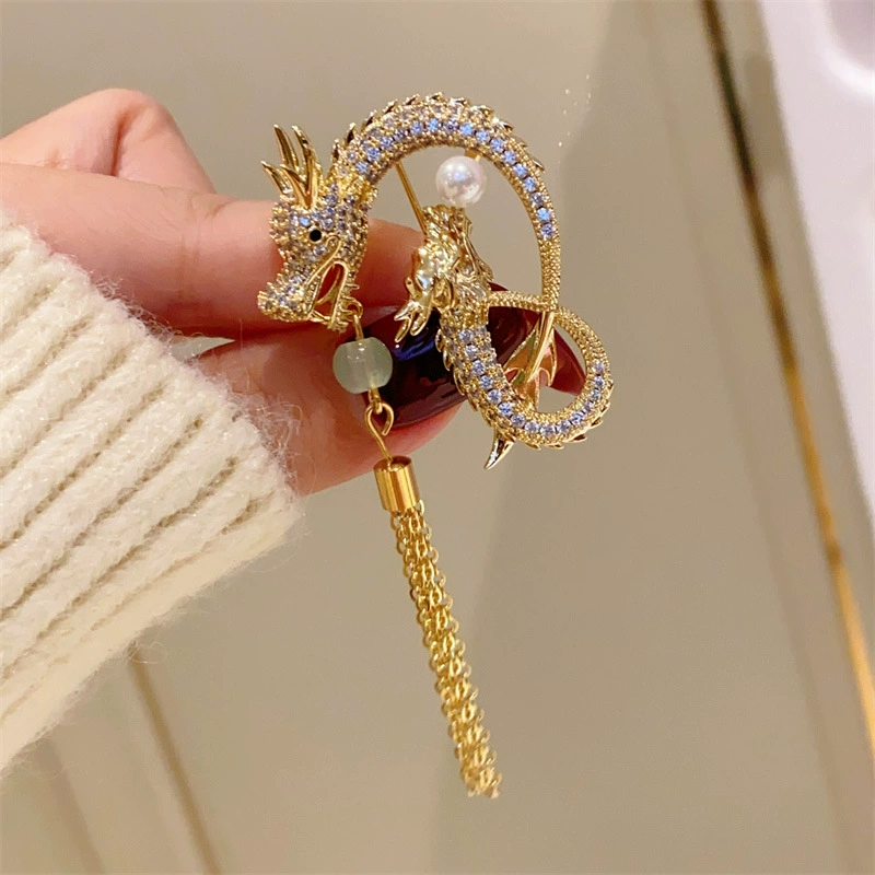 | nameOriginal | 2024 New Year of the Dragon Chinese style double dragons playing with beads brooch high-end niche design suit tassel corsage brooch |