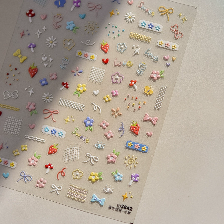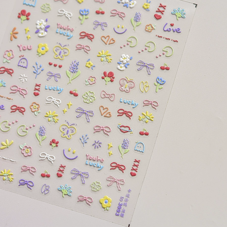 | nameOriginal | 2024 New Year wildflower embossed nail art stickers three-dimensional colorful flower plaid daisy nail sticker decoration |