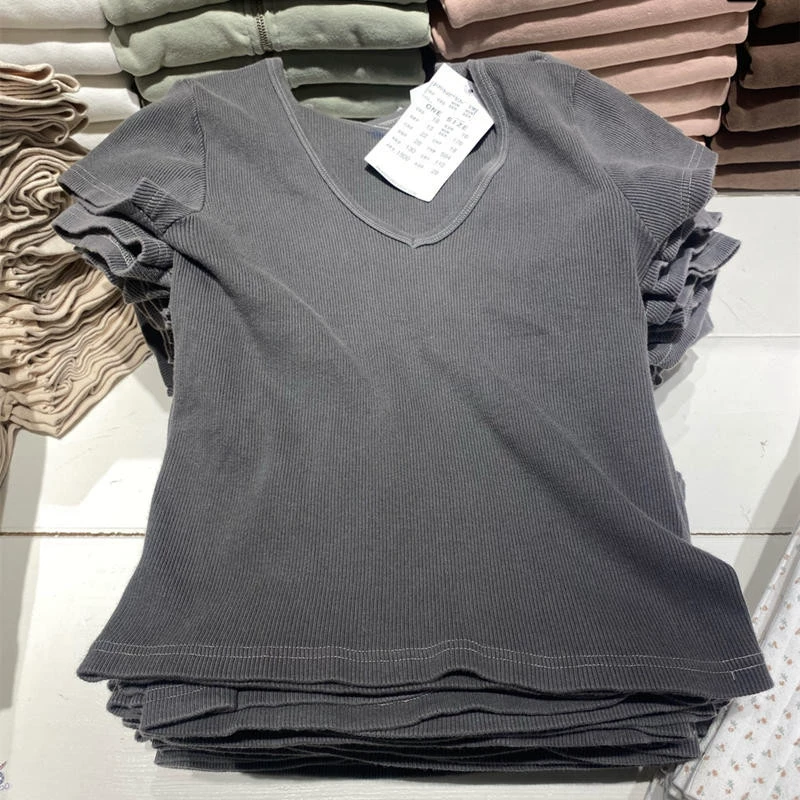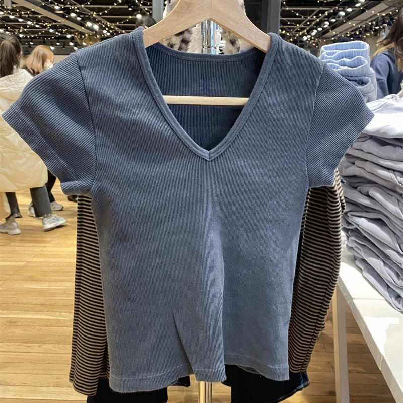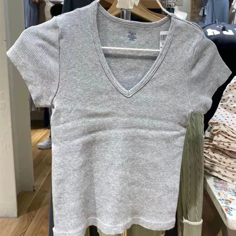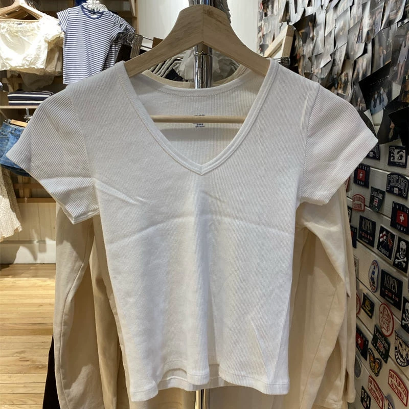 | nameOriginal | 2024 new Yu Shuxin same style V-neck slim slim T-shirt bm short-sleeved pure cotton breathable versatile top for women trendy |