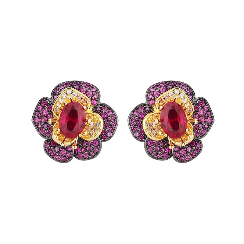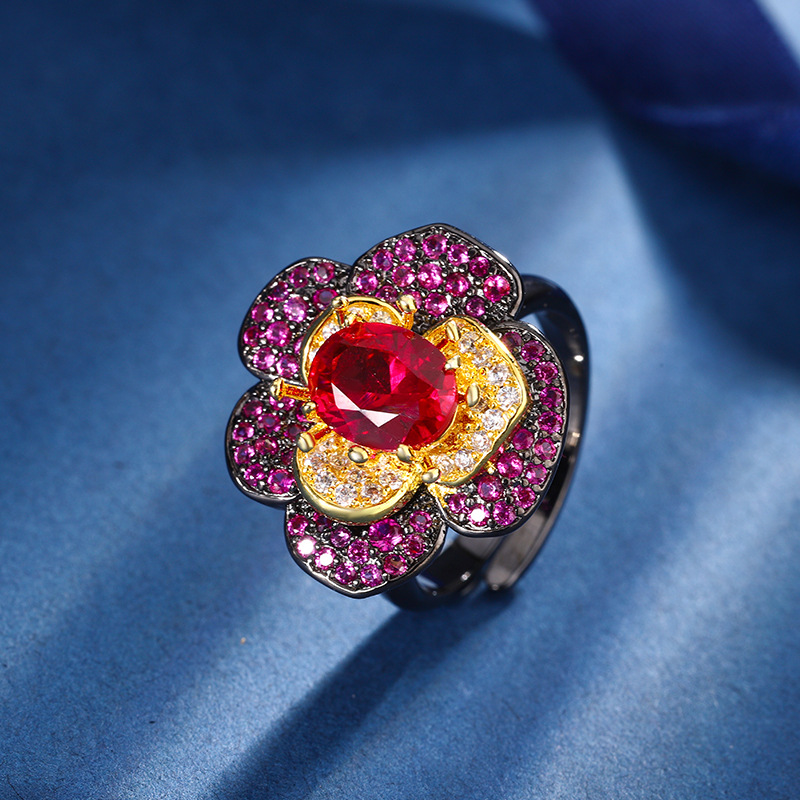 | nameOriginal | 2024 new Zhuang Shengsheng jewelry copper gold-plated simulation red corundum flowers black gold personality suit 7*9-6*8 |