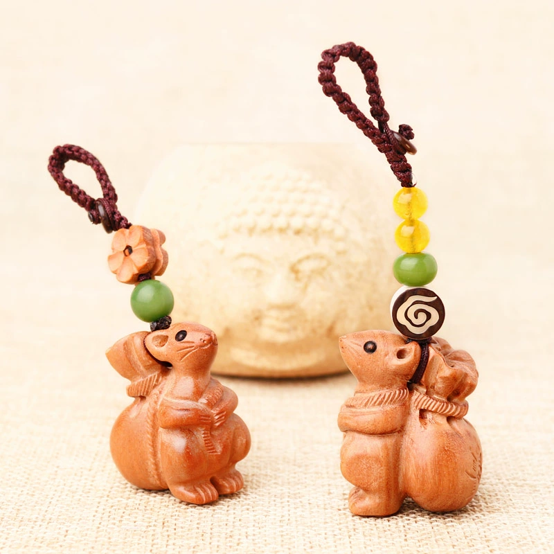 | nameOriginal | 2024 Ox mascot handmade peach wood lucky rat little mouse carrying money bag spiritual rat gift pendant keychain |