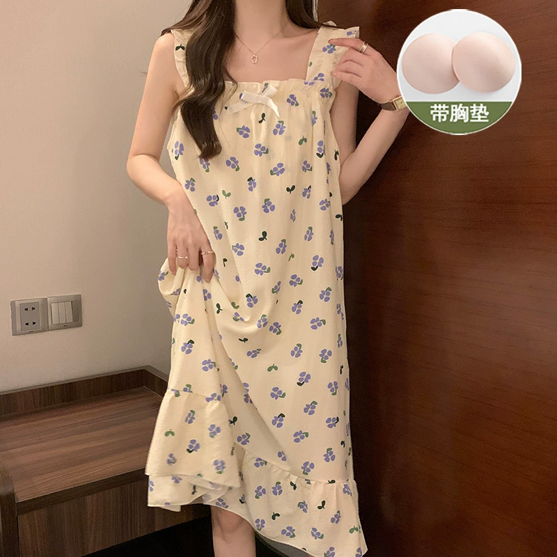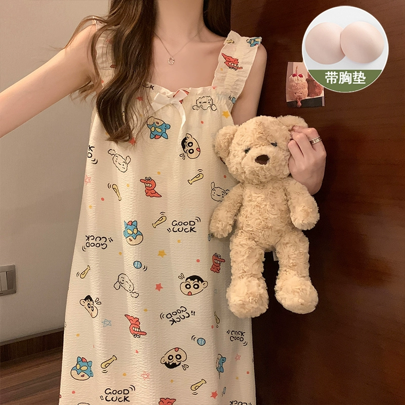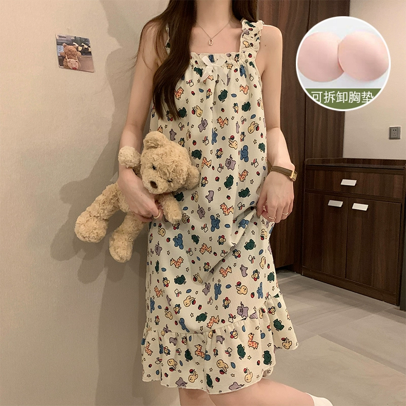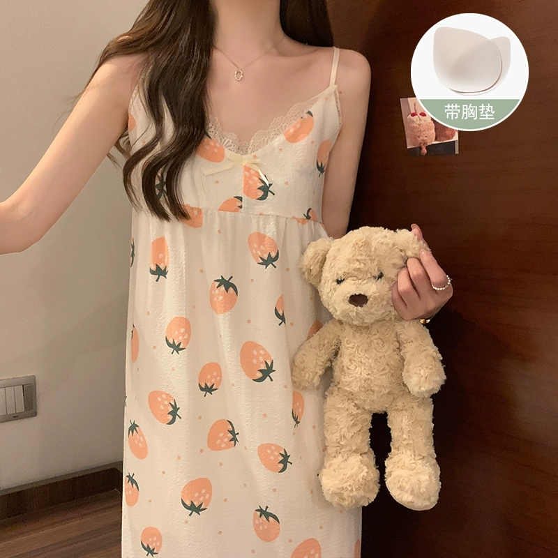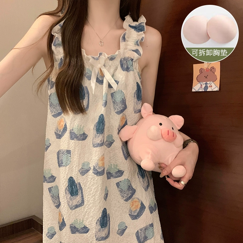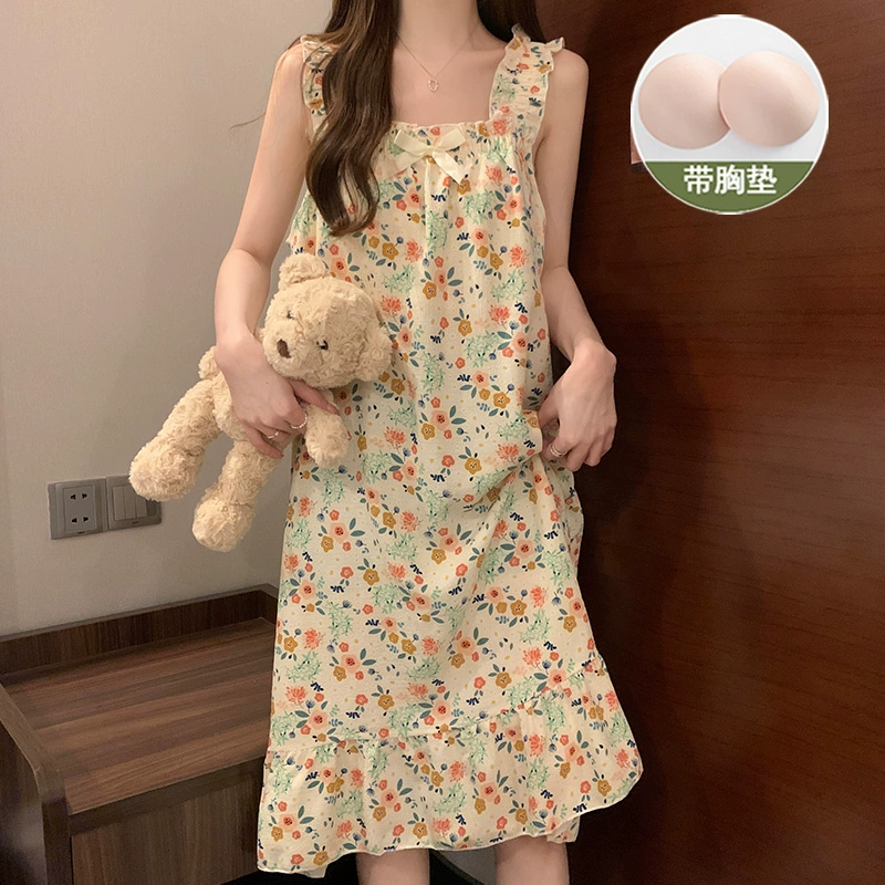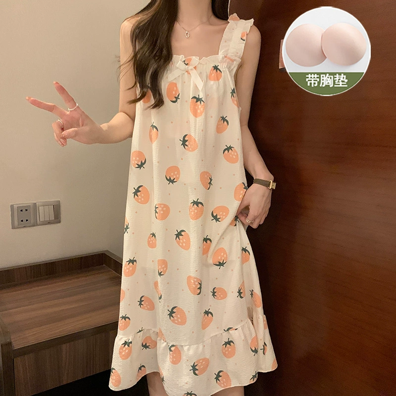 | nameOriginal | 2024 Pajamas with Breast Pads Internet Celebrity Style Summer Suspender Nightgown Women's Sweet Japanese Style Sleeveless Little People Home Clothes |