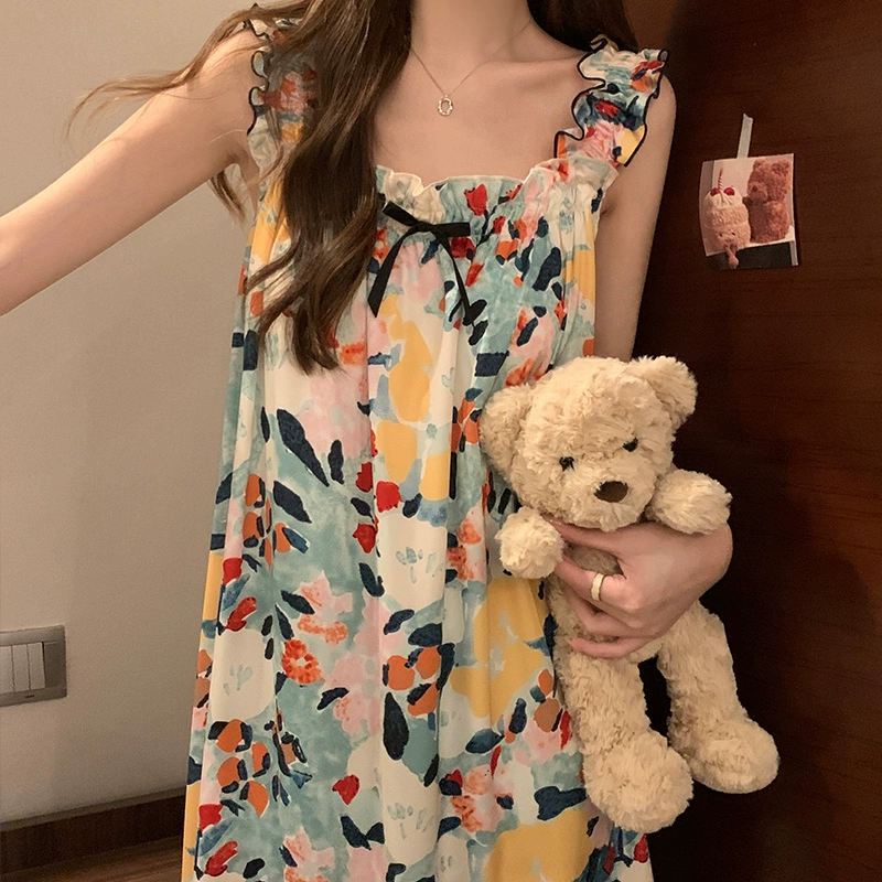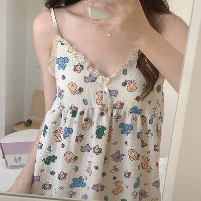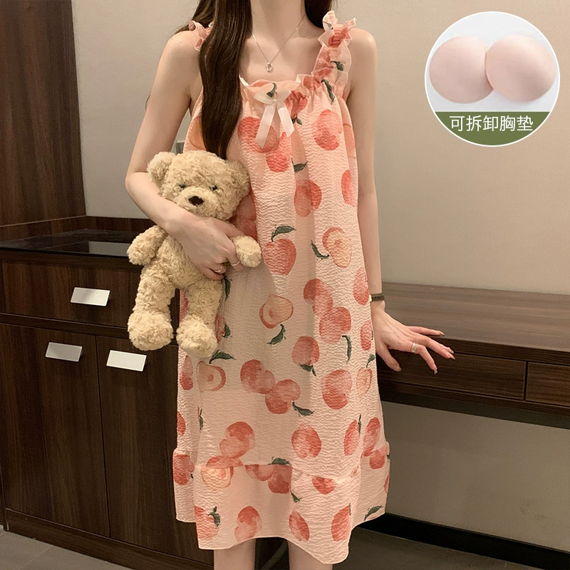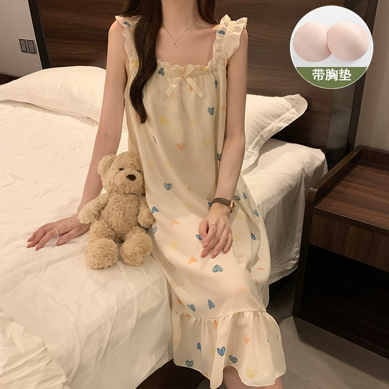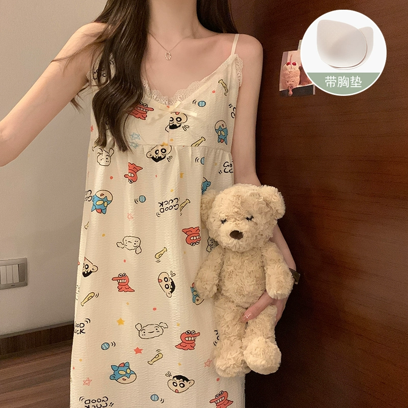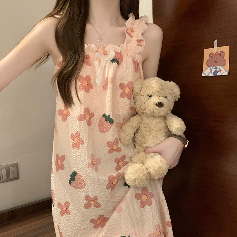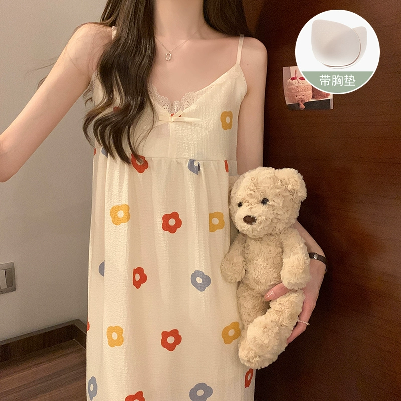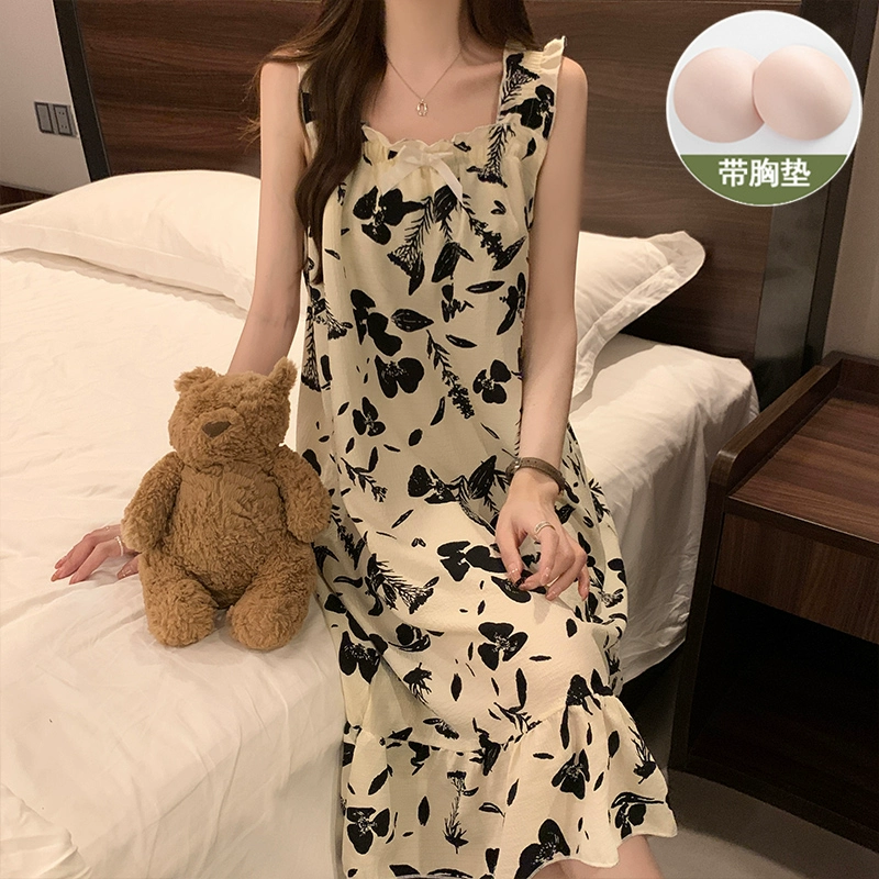 | nameOriginal | 2024 Pajamas with Breast Pads Internet Celebrity Style Summer Suspender Nightgown Women's Sweet Japanese Style Sleeveless Little People Home Clothes |