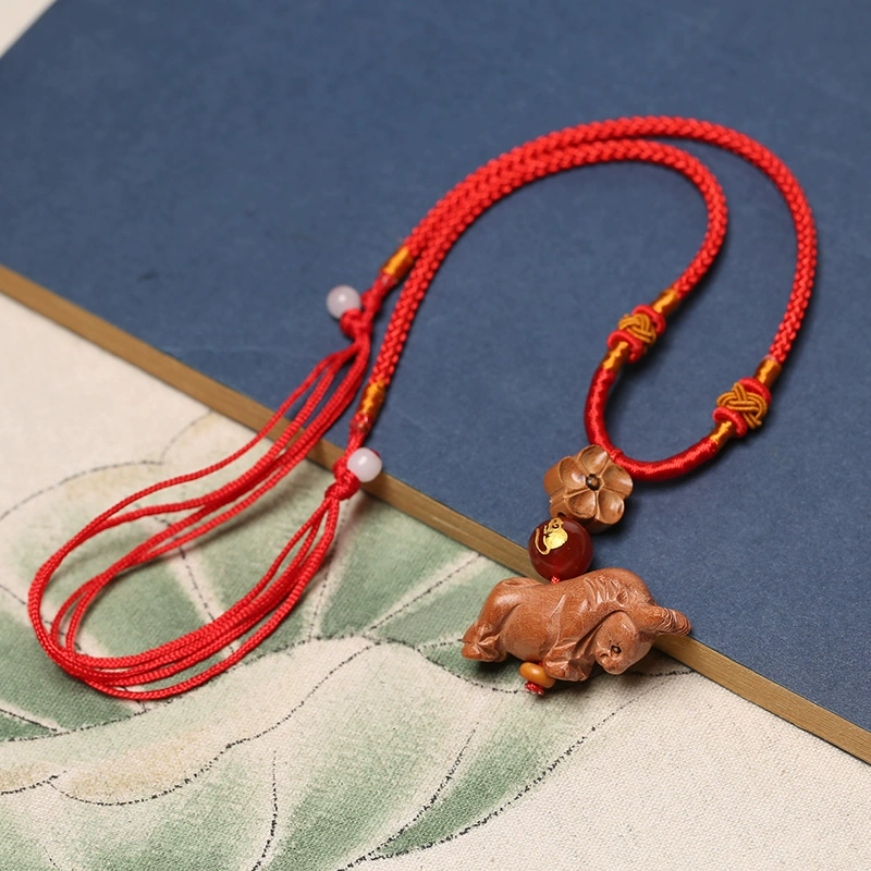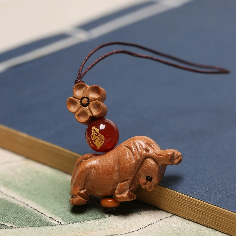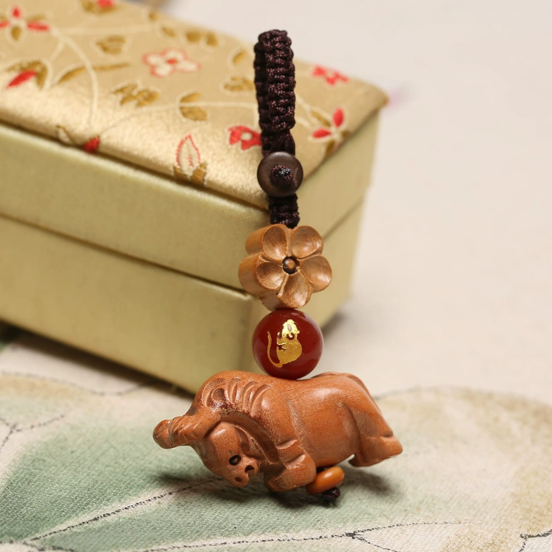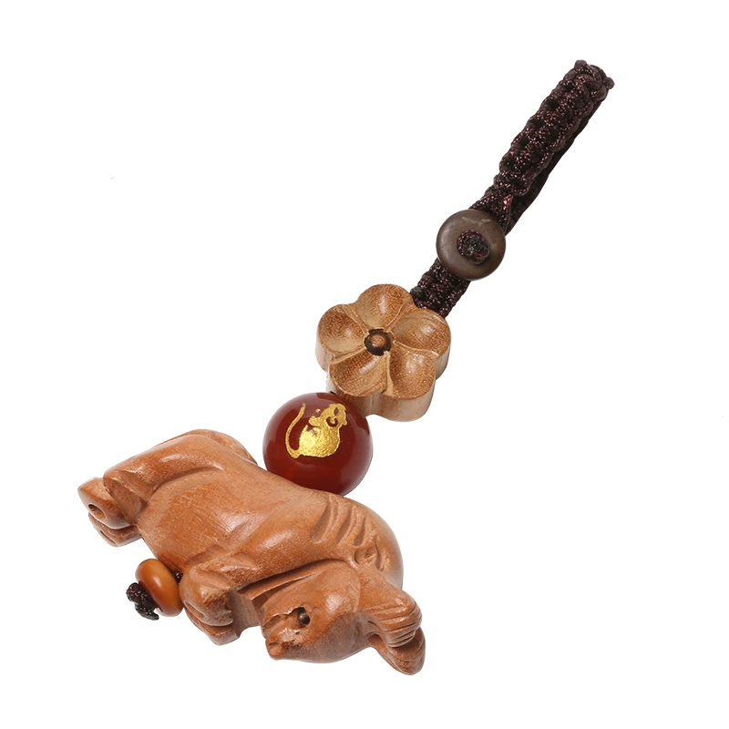 | nameOriginal | 2024 Peach Wood Zodiac Ox Mascot Danfeng Lanzhi Hongniu Pendant Keychain Mobile Phone Chain Pendant |