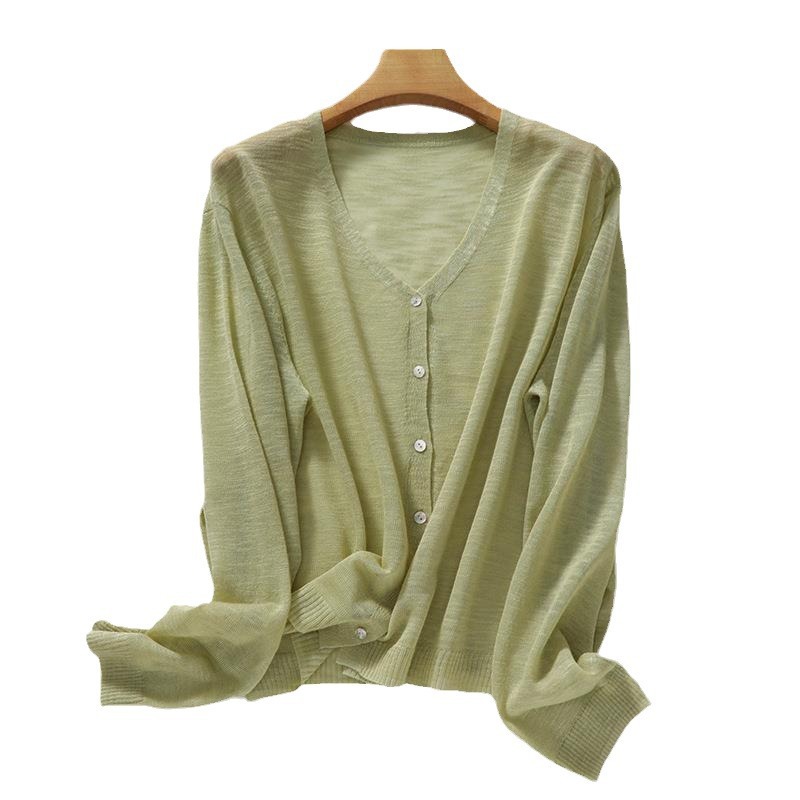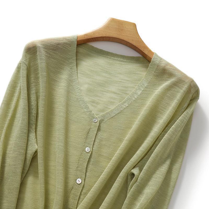 | nameOriginal | 2024 Ramie Top Women's Summer Clothes Ice Silk Knitted Cardigan V-Neck Thin Long-Sleeved Jacket All-Match Sunscreen Jacket |
