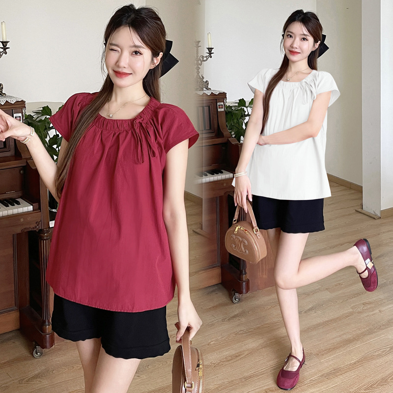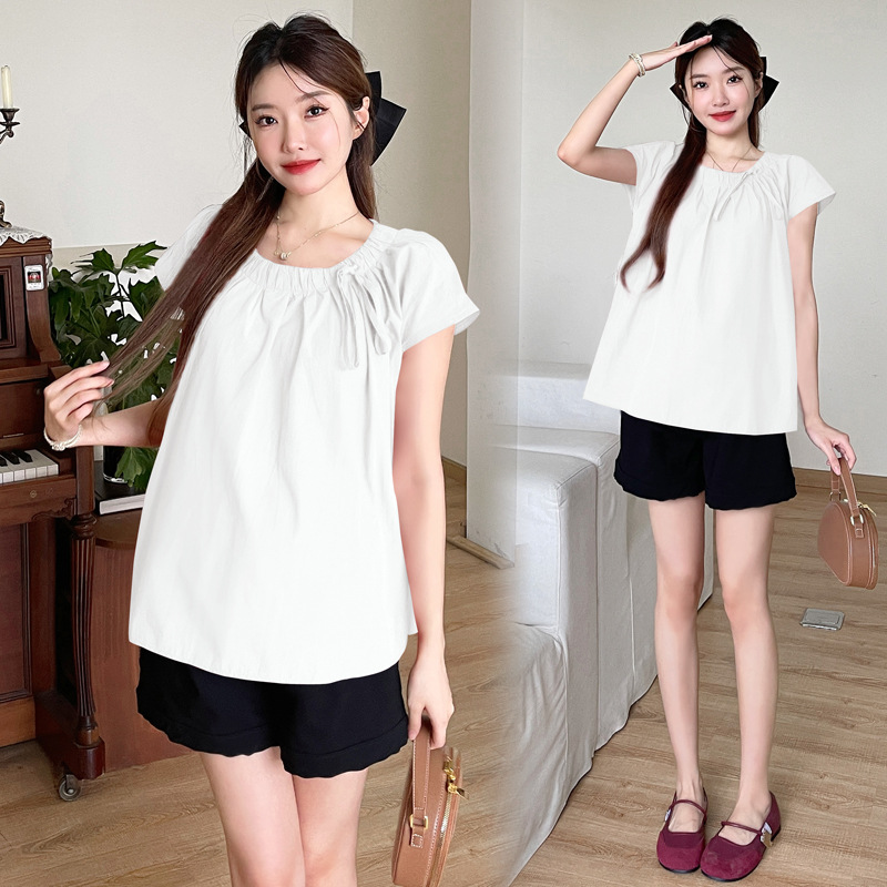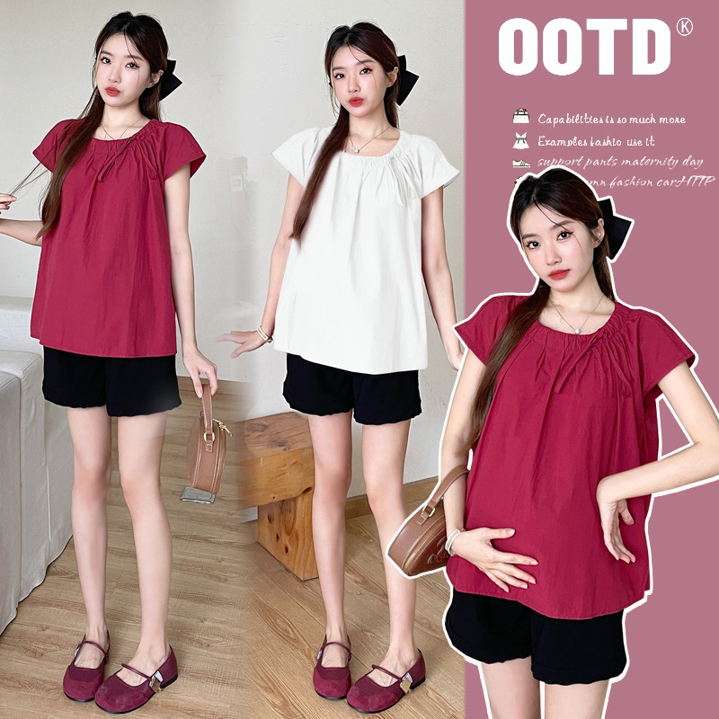 | nameOriginal | 2024 Real Shot in stock New Pregnant Women Summer Sweet Small Flying Sleeve Vented Crewneck Shirt Belly Shorts |