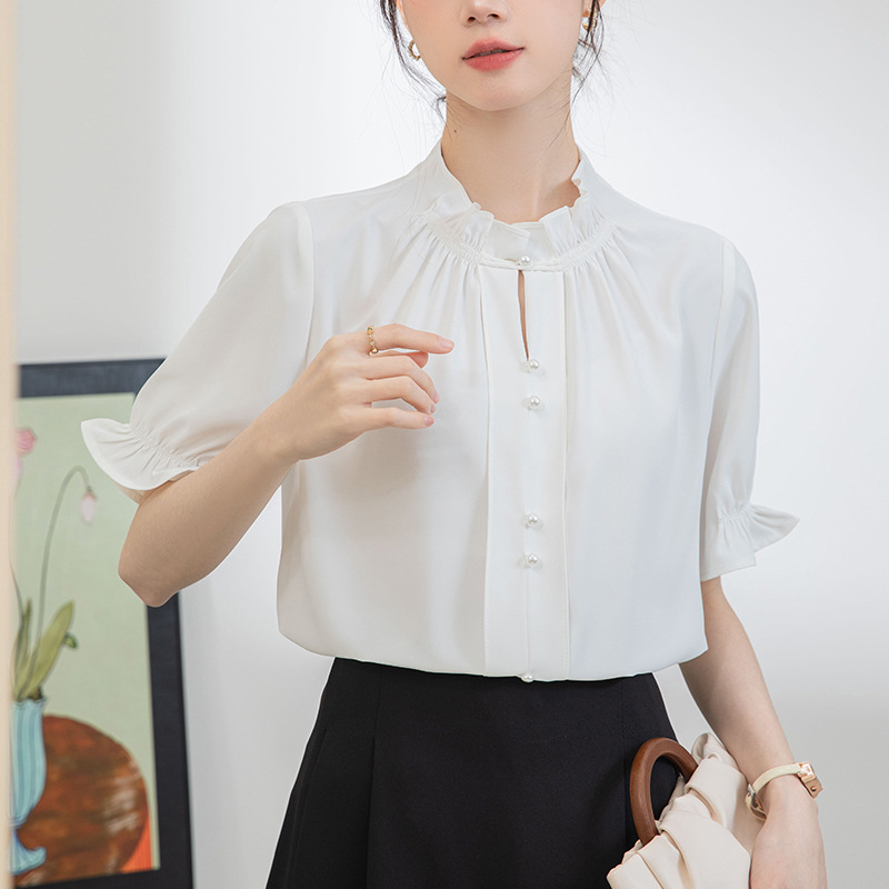 | nameOriginal | 2024 Real Shot New Ruffled Short Sleeve Shirt Women's Summer French Elegant Top |