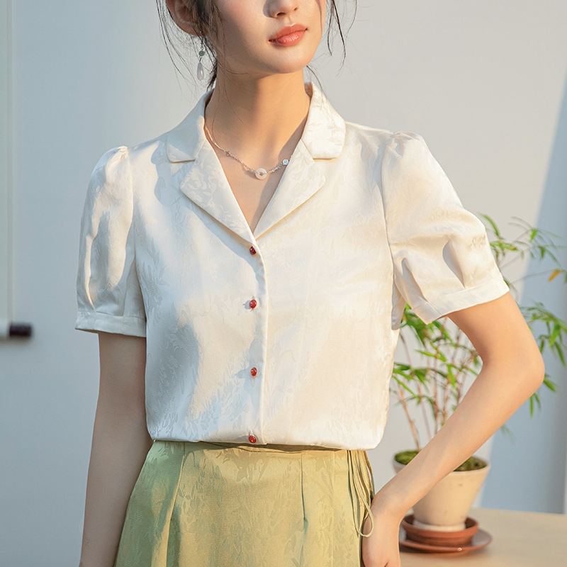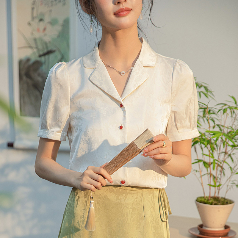 | nameOriginal | 2024 Real Shot Small Floating Flower Shadow New Chinese Style National Style Short Sleeve Summer New Western Style Shirt for Women |
