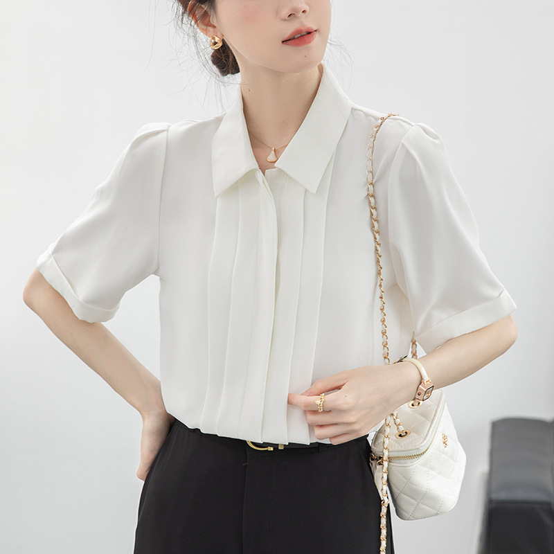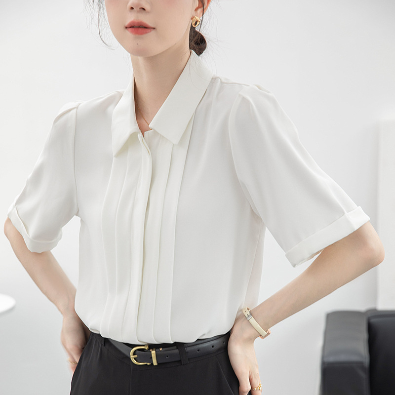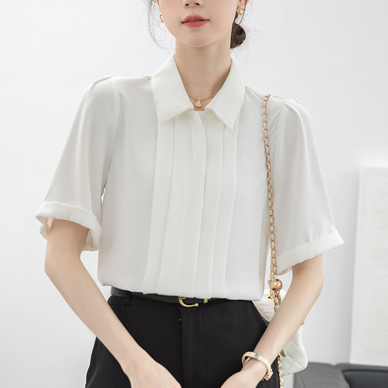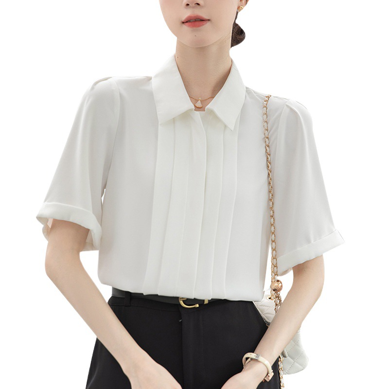 2024 Real Shot White Chiffon Shirt Women's Short-sleeved Summer New Civil Servant Interview Temperament Dress Professional Shirt