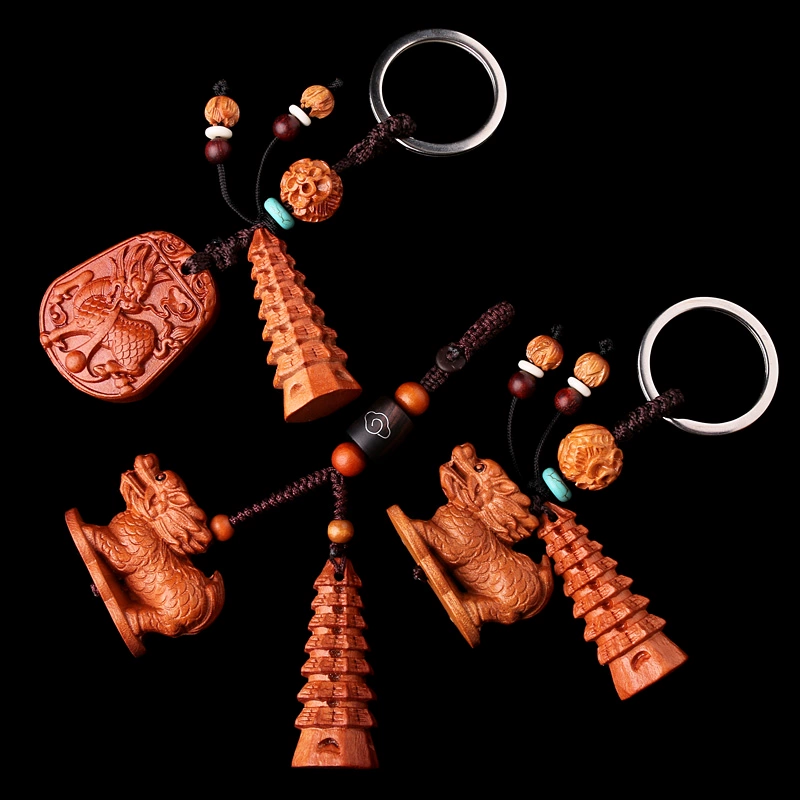 | nameOriginal | 2024 Ruilin Tower car keychain hand-woven peach wood pendant, snake mascot pendant |