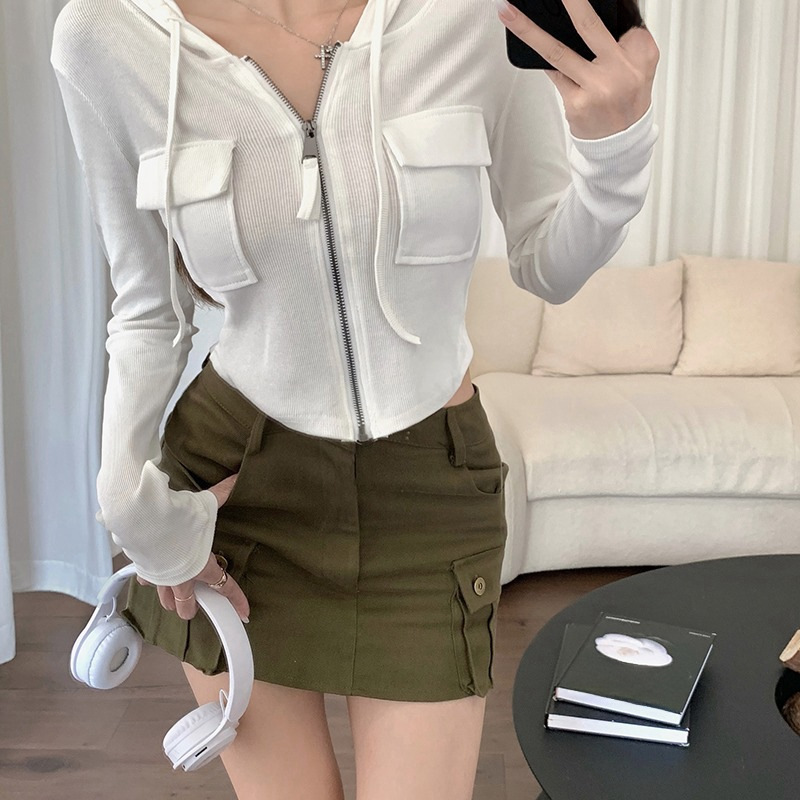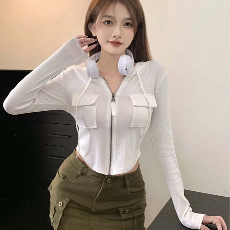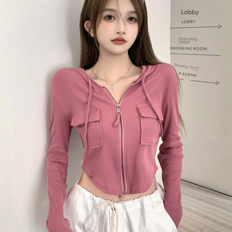 | nameOriginal | 2024 short hooded cardigan coat for women autumn and winter pure sweet and spicy small design chic T-shirt zipper |