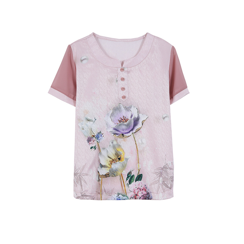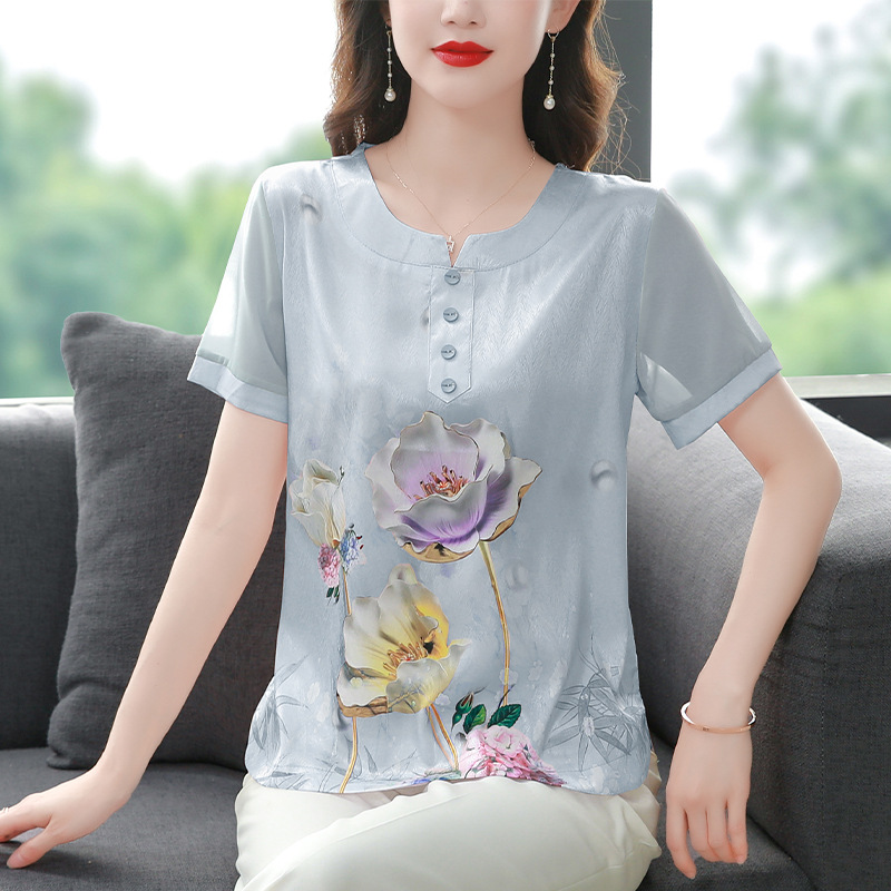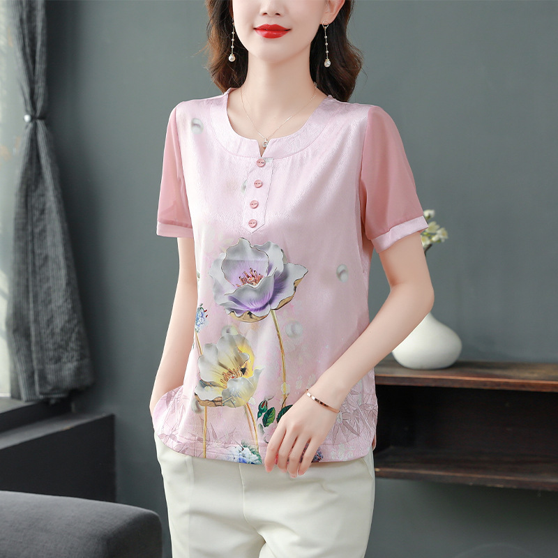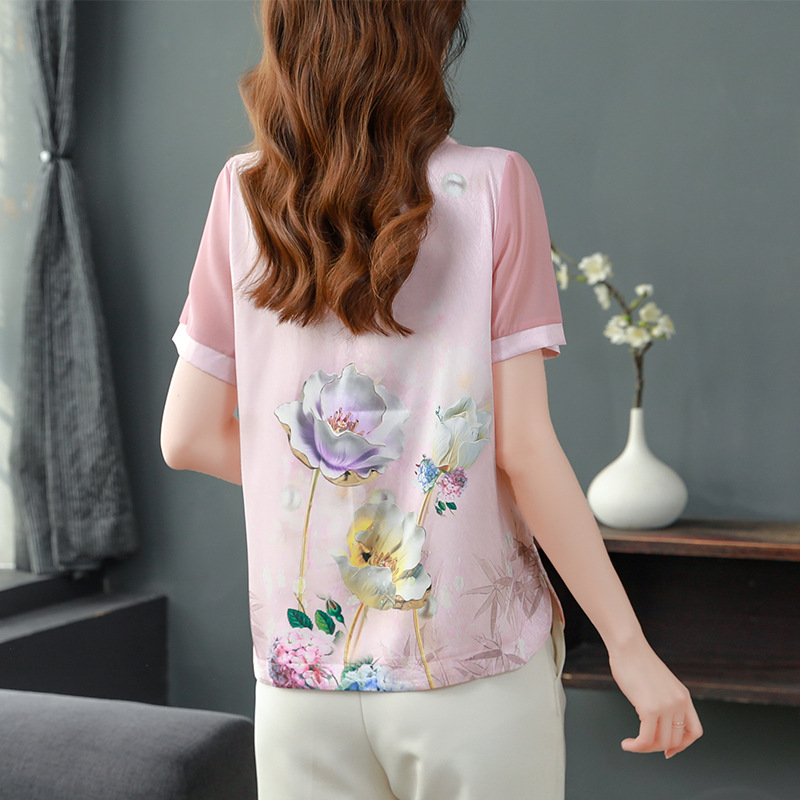 | nameOriginal | 2024 silk shirt National style ethnic style small shirt women's short sleeve summer mother loose mulberry silk floral top |