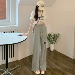 2024 Small Gray Sweatpants Summer Thin Mop Sports Pants Ice Silk Wide Leg Pants Women’s Hole Casual Pants Summer