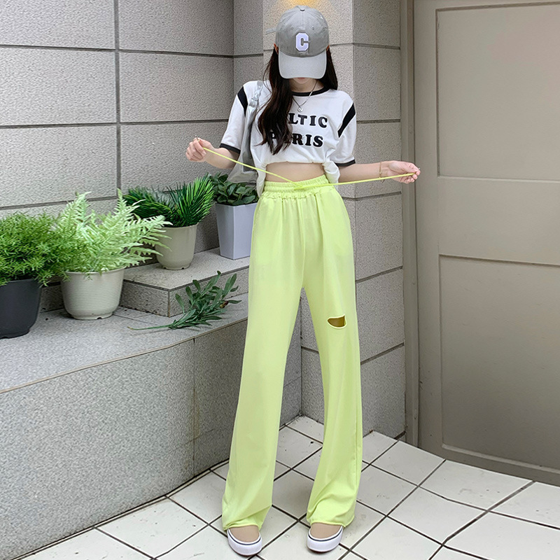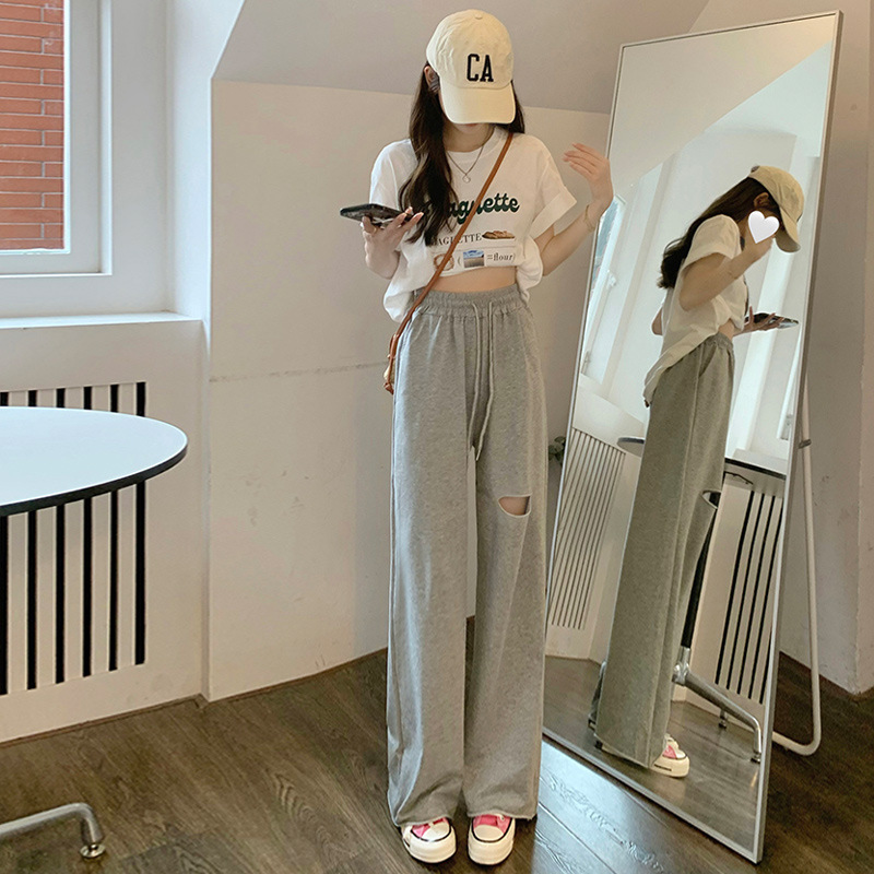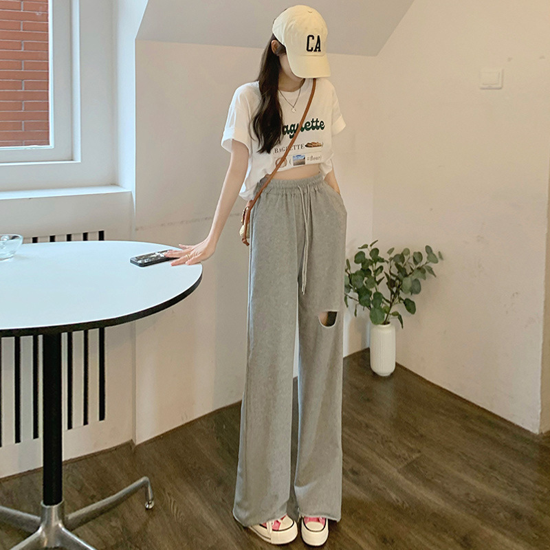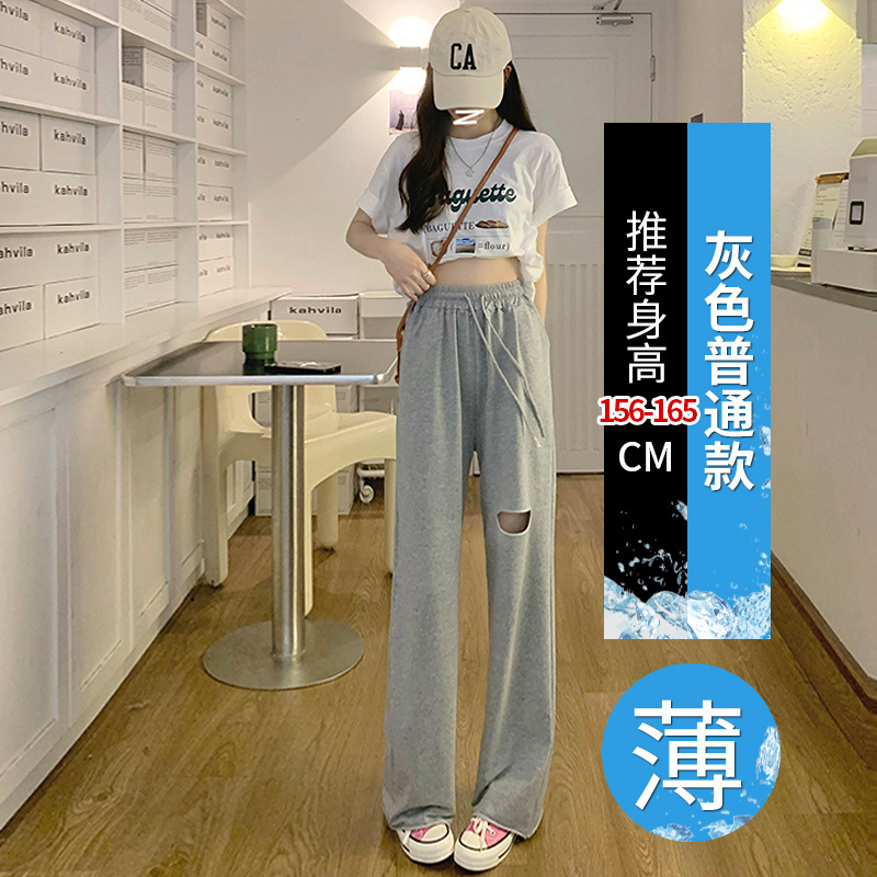 2024 Small Gray Sweatpants Summer Thin Mop Sports Pants Ice Silk Wide Leg Pants Women's Hole Casual Pants Summer