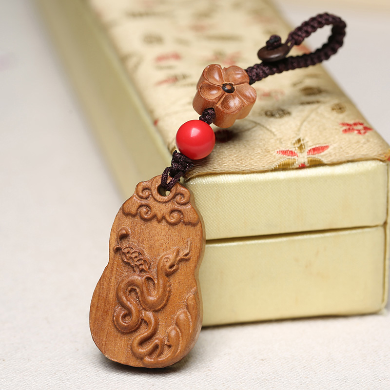 | nameOriginal | 2024 Snake mascot Ruilin protects 1 tower snake and cow arch gold pendant peach wood snake key chain pendant |