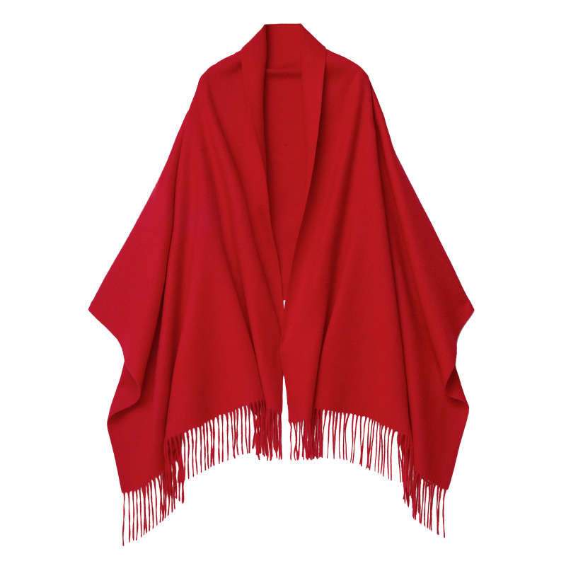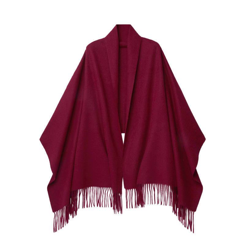 2024 Solid Color Wool Scarf Warm Women’s Winter Red Shawl Foreign Trade Lamb Fleece Plain Long Foreign Trade