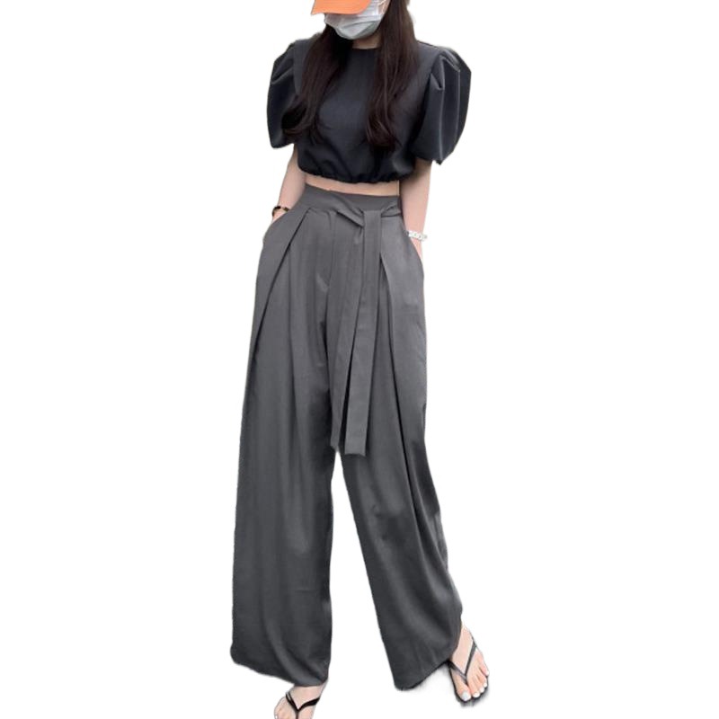 2024 Spring and Autumn Draping Lace-up Wide Leg Pants Women's Spring and Autumn High Waist Straight Leg Pants Loose Casual Pants Look Tall and Slim Pants
