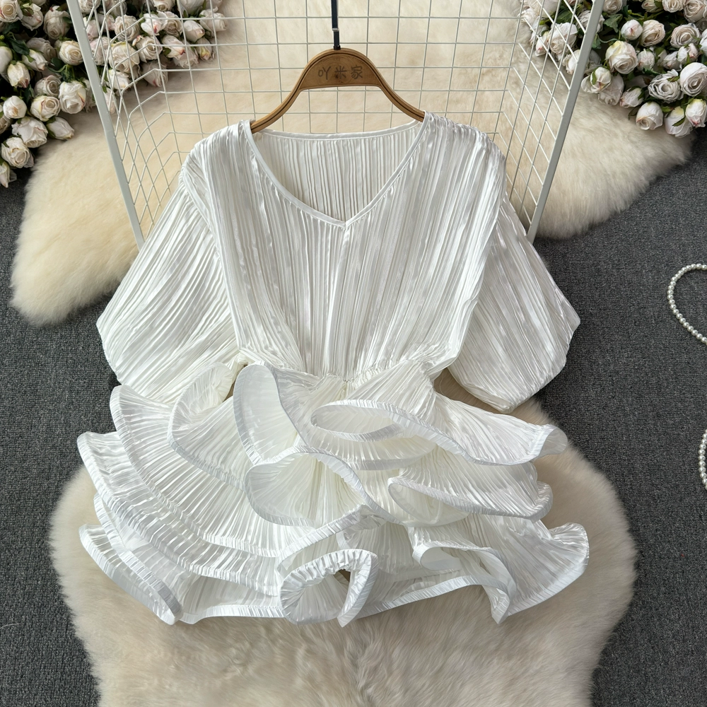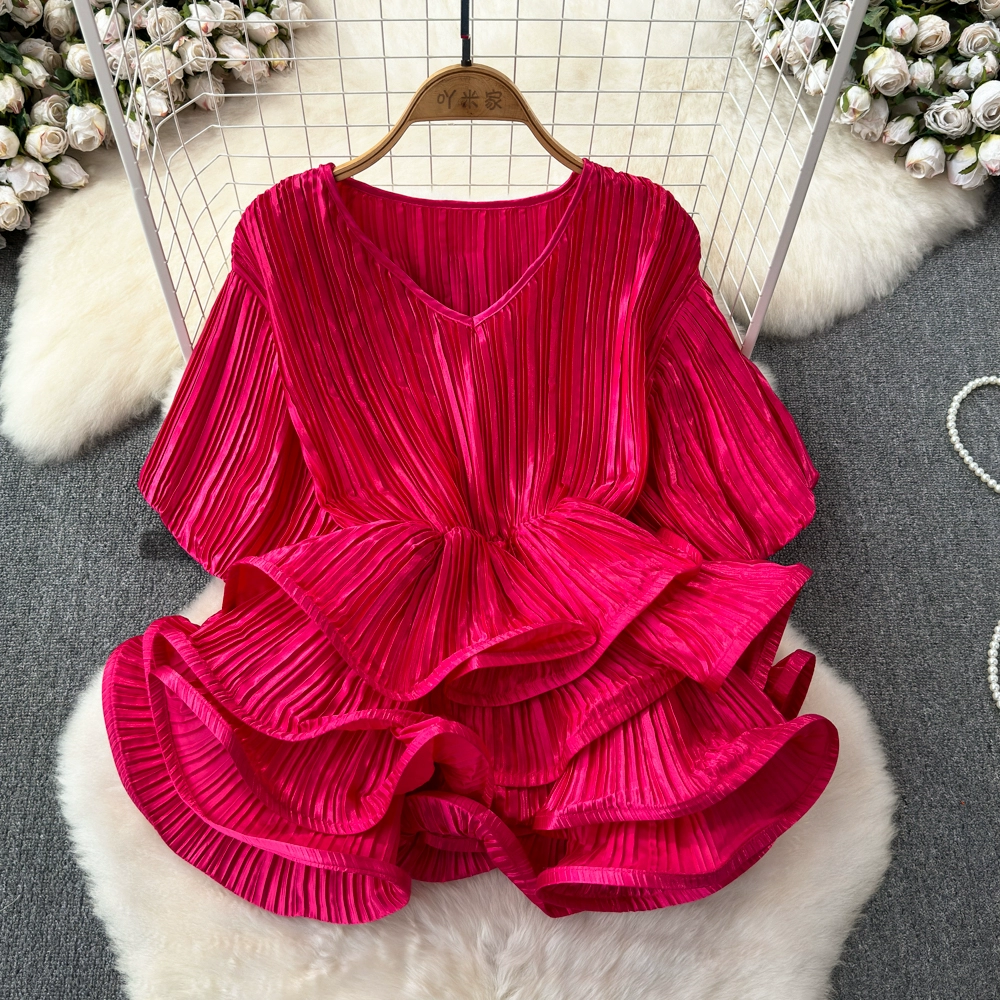 | nameOriginal | 2024 Spring and Autumn European and American lantern long-sleeved V-neck loose belly-covering waist-slimming lotus leaf hem pullover shirt for women Western-style tops |