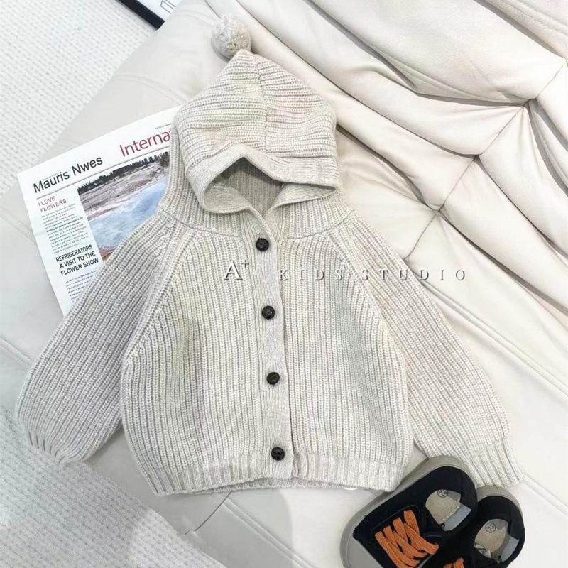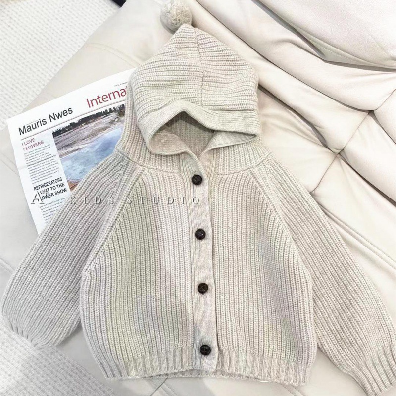 | nameOriginal | 2024 spring and autumn hooded knitted girls' coat cardigan super cute fur ball hat boys' sweater all-match Fashion |