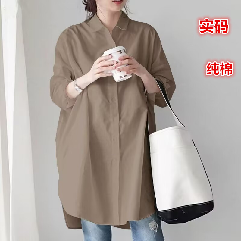 2024 Spring and Autumn khaki Korean Style Loose Long Sleeve Mid-length Casual Shirt All-match Elegant Shirt plus size Women's Clothing