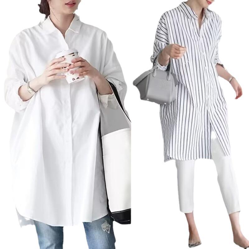 2024 Spring and Autumn khaki Korean Style Loose Long Sleeve Mid-length Casual Shirt All-match Elegant Shirt plus size Women’s Clothing