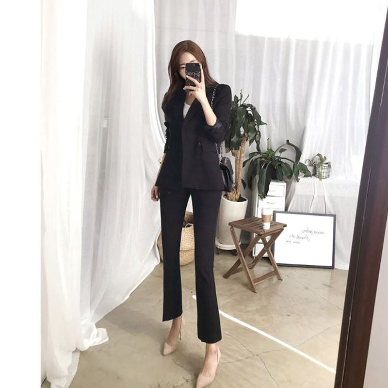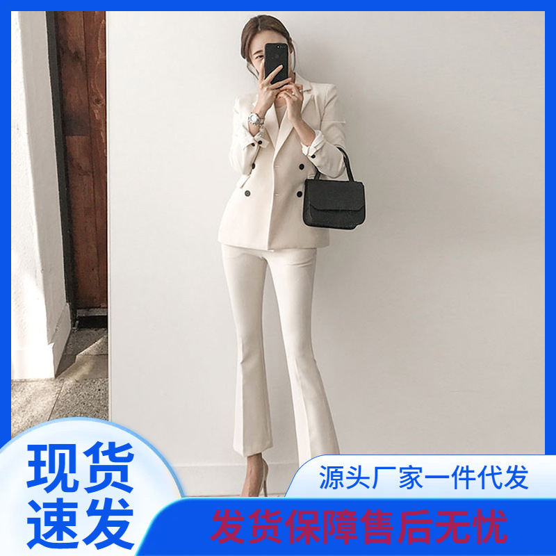 2024 Spring and Autumn Korean-style Slim-fit Double-breasted Professional Micro-pants Suit Women's Jacket Casual Fashion Small Suit
