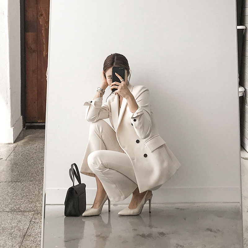 2024 Spring and Autumn Korean-style Slim-fit Double-breasted Professional Micro-pants Suit Women’s Jacket Casual Fashion Small Suit