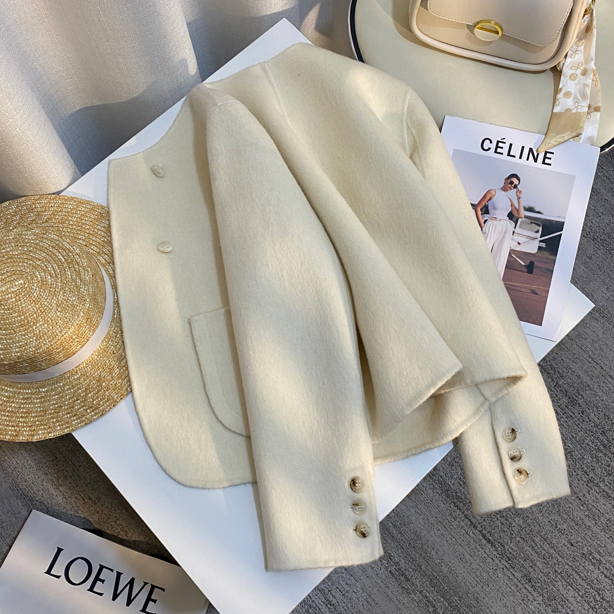 | nameOriginal | 2024 Spring and Autumn New Arrival Off-white French Simple Double-sided Tweed Short Coat Women's Korean Style Fashionable Top |