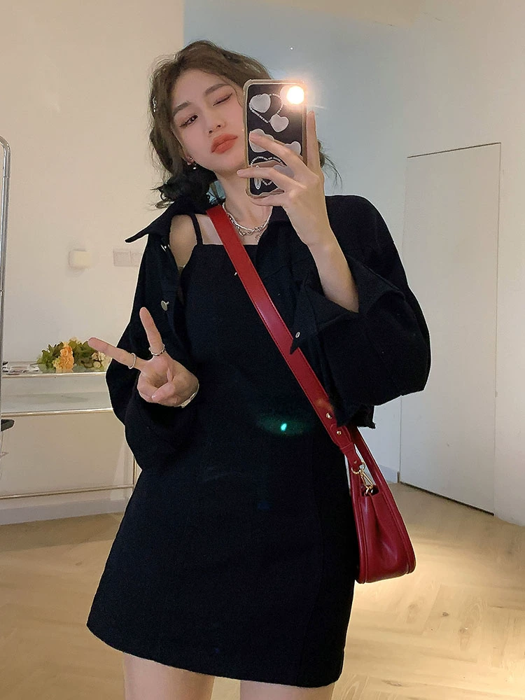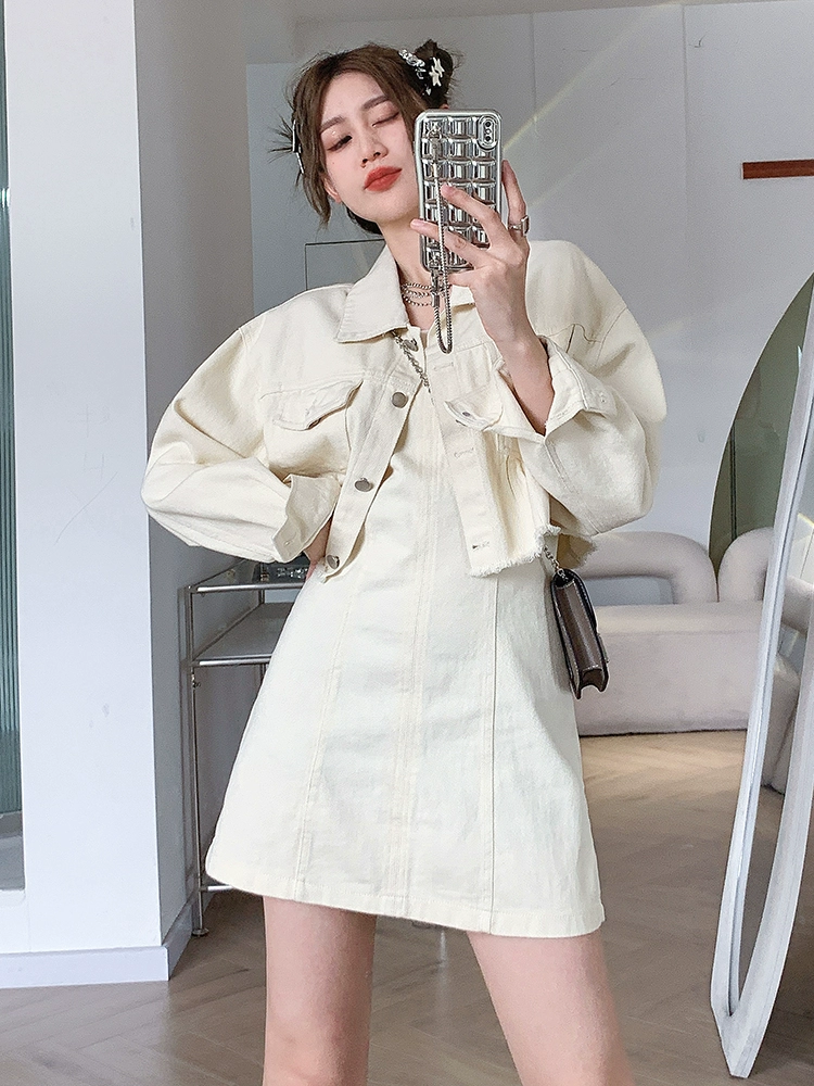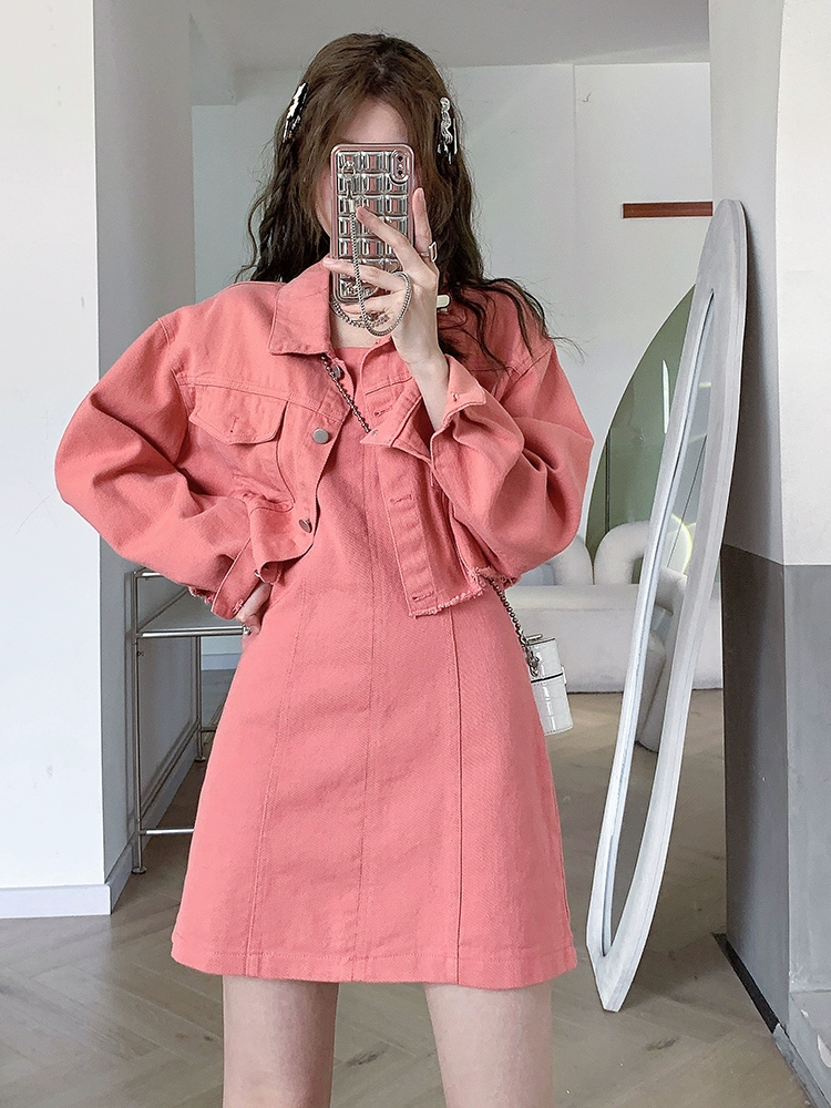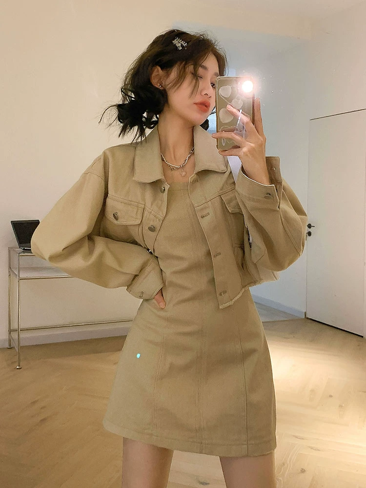 | nameOriginal | 2024 spring and autumn new denim suit women's long-sleeved jacket short + waist A-line suspender skirt two-piece set |