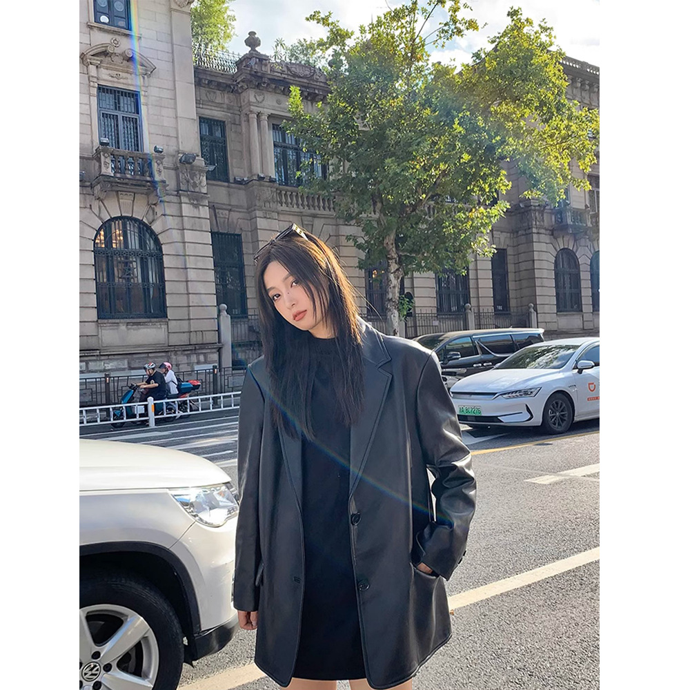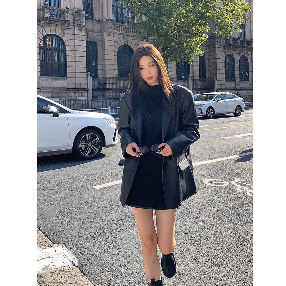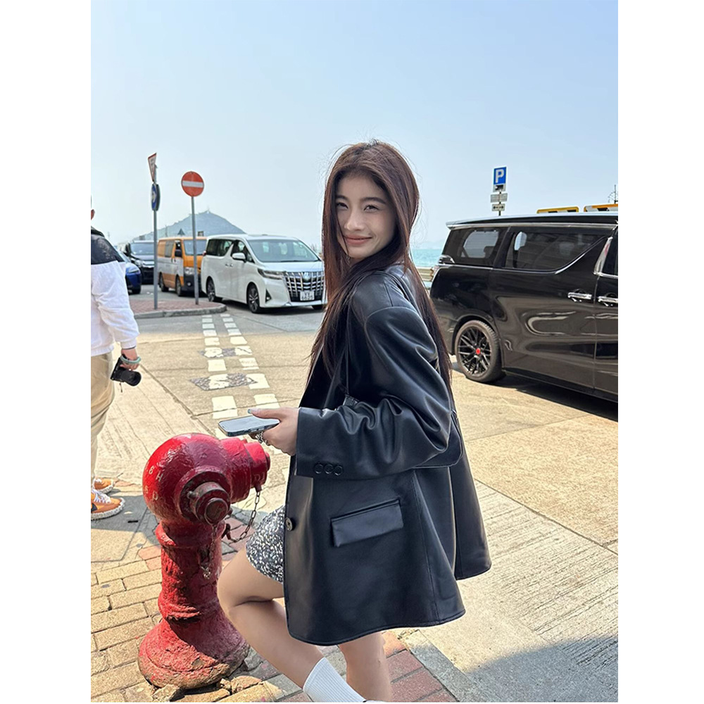 | nameOriginal | 2024 Spring and Autumn New Design High-grade Sense Fried Street Retro Black PU Leather Suit Leather Jacket Women's Loose Hong Kong Style |