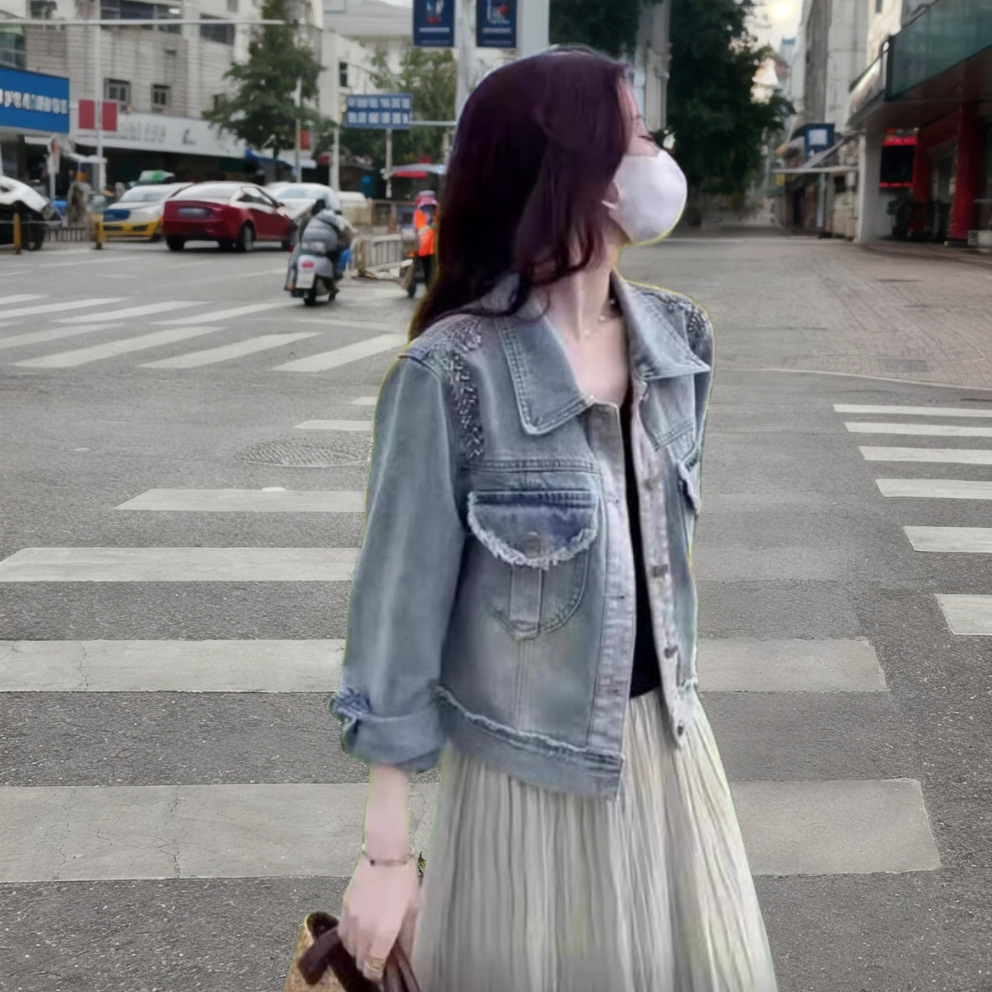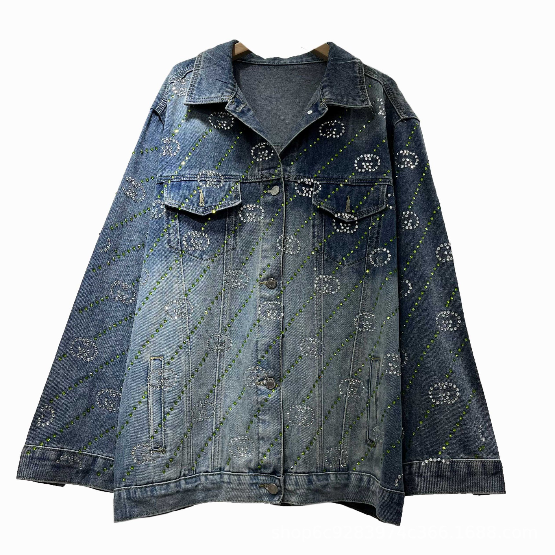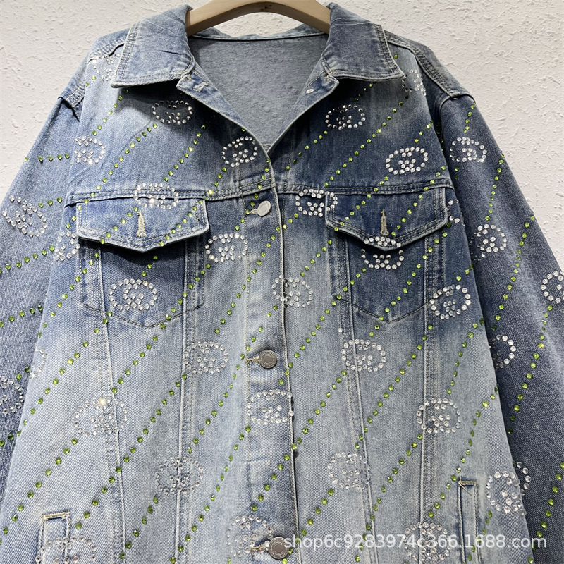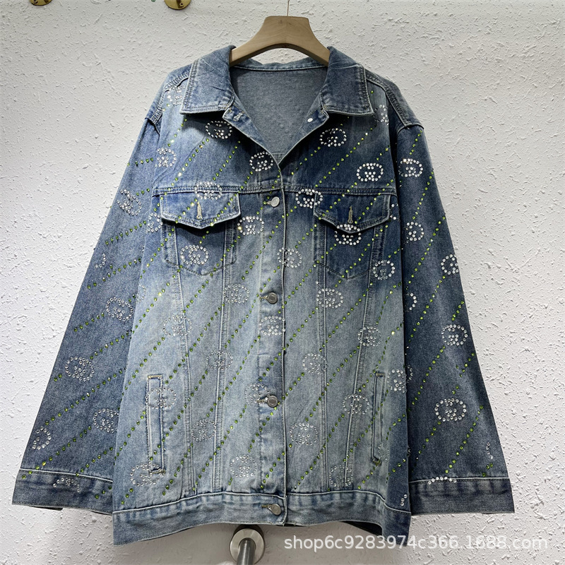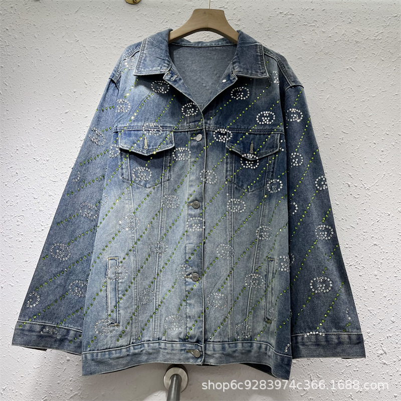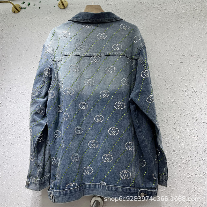 2024 Spring and Autumn New European Heavy Industry Hot Drilling Striped Letter Design Loose Lazy Style Denim Coat Top