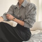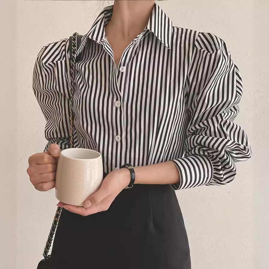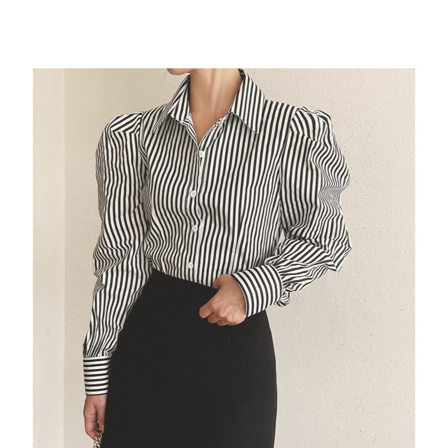 | nameOriginal | 2024 Spring and Autumn New Fashion Elegant Design Sense Bubble Long Sleeve Top Women's Vertical Stripe Shirt |