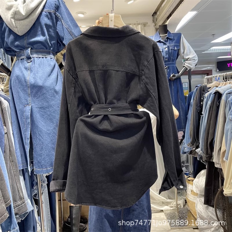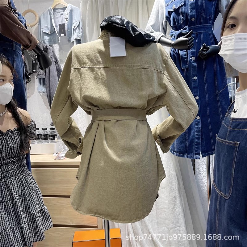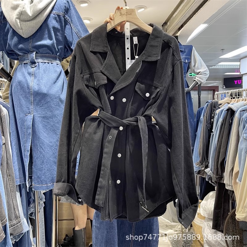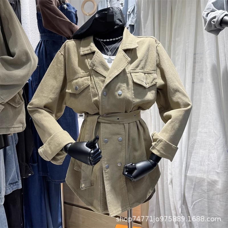 | nameOriginal | 2024 Spring and Autumn New Korean style suit collar double breasted mid-length loose lace-up waist slimming Denim coat for women |