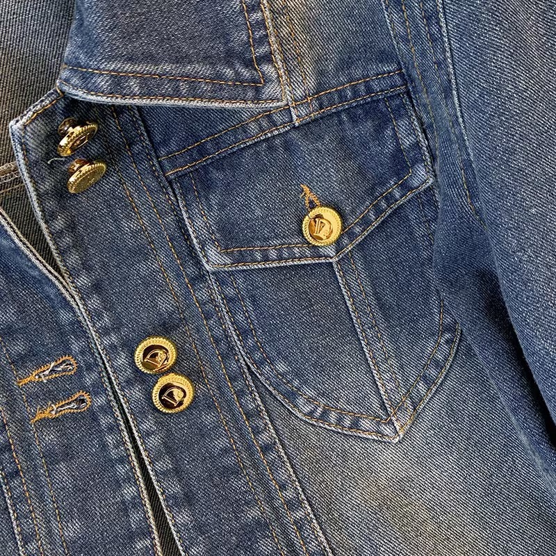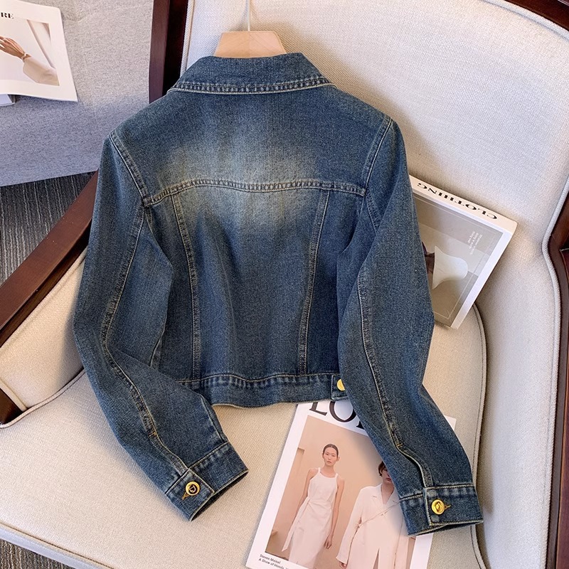 | nameOriginal | 2024 Spring and Autumn New Laps Retro Blue Shoulder Denim Coat Women's Short Slim-fit Slimming High Street Casual Jacket |