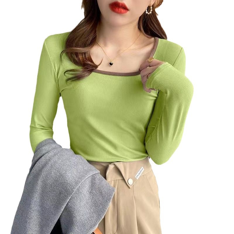 | nameOriginal | 2024 Spring and Autumn New Long-sleeved T-shirt Women's Inner Base Shirt Casual All-match Slimming Solid Color Stitching Square Collar Top |