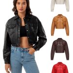 2024 Spring and Autumn New Loose Casual Leather Women’s Long-sleeved Single-breasted Women’s Short Jacket Lapel European and American Fashion