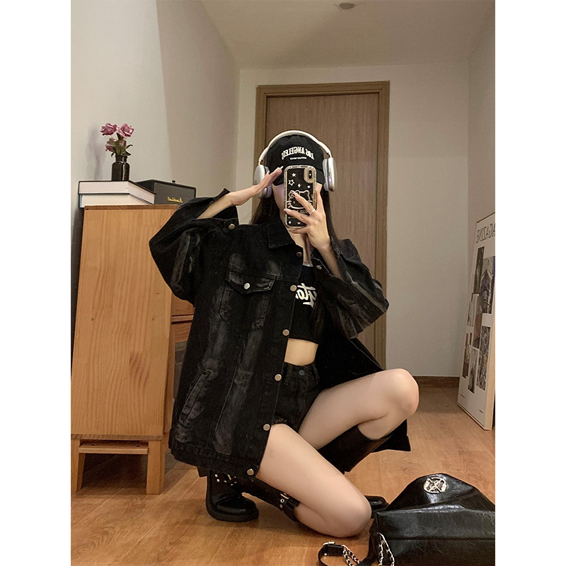 | nameOriginal | 2024 Spring and Autumn New Niche Contrast Color Denim Jacket Women's Large Size Chubby Sister Loose Meat Covering Jacket Washed Top |