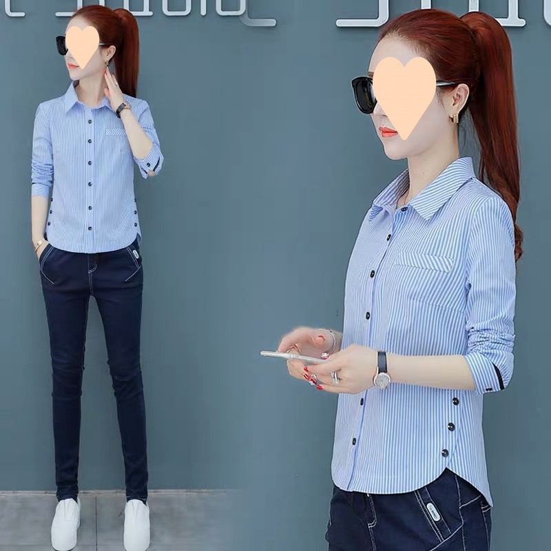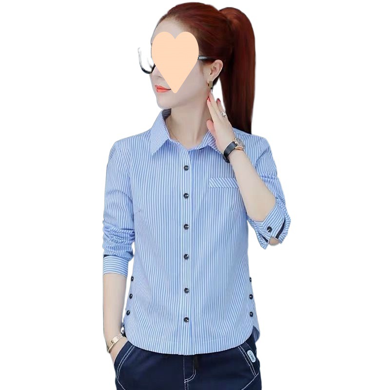 2024 Spring and Autumn New Plaid Slim-fit Striped Long-sleeved Shirt Women's Shirt Korean-style Women's Base Shirt Top