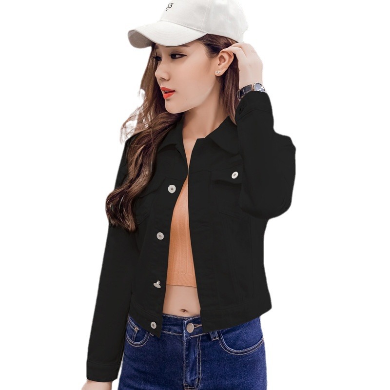 2024 Spring and Autumn New Short Denim Top Korean-style Candy-colored All-match Long-sleeved Jacket Women's Large Size Jacket